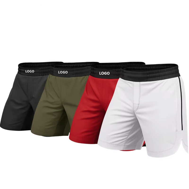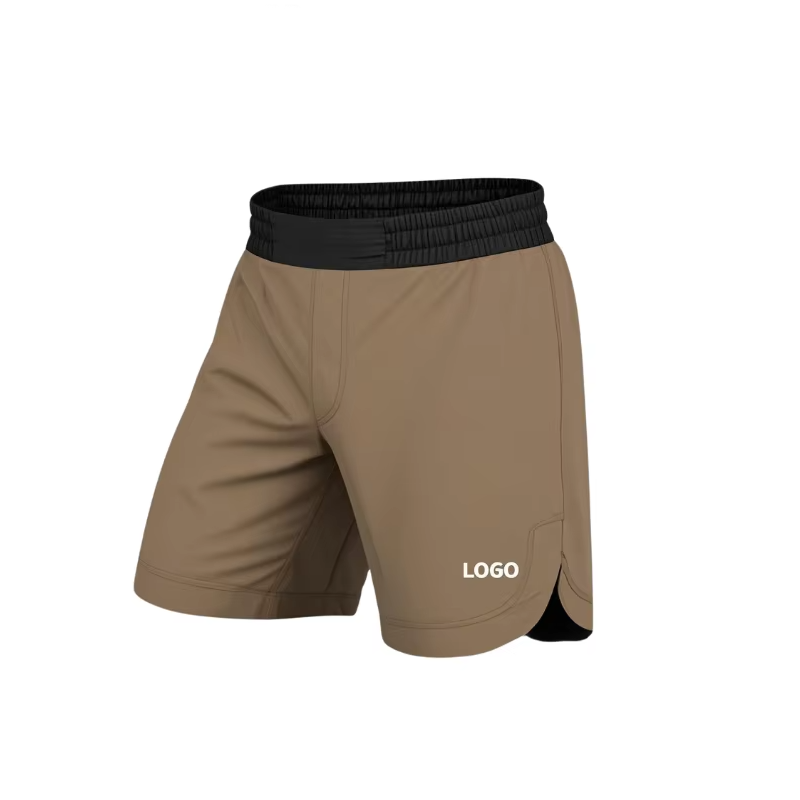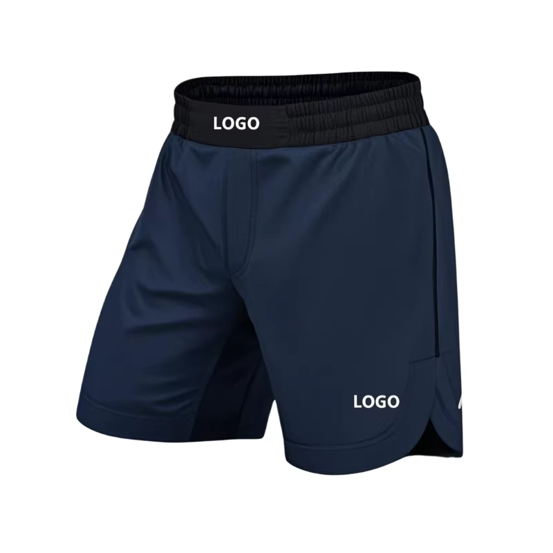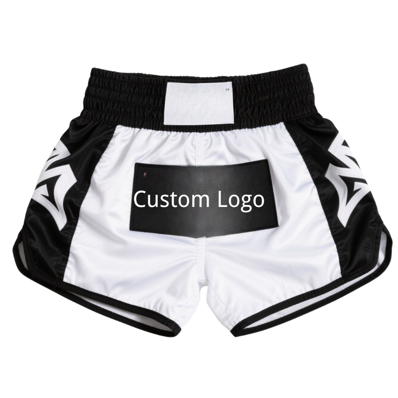 Shorts de boxe pour entraînement quotidien avec logo frontal, matière Spandex/Polyester, séchage rapide et respirant pour la liberté de mouvement des jambes, style combat