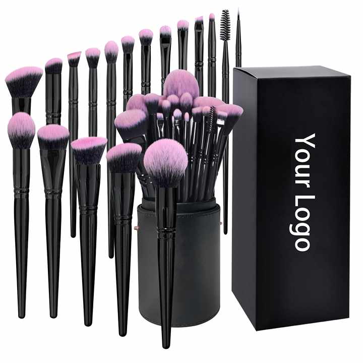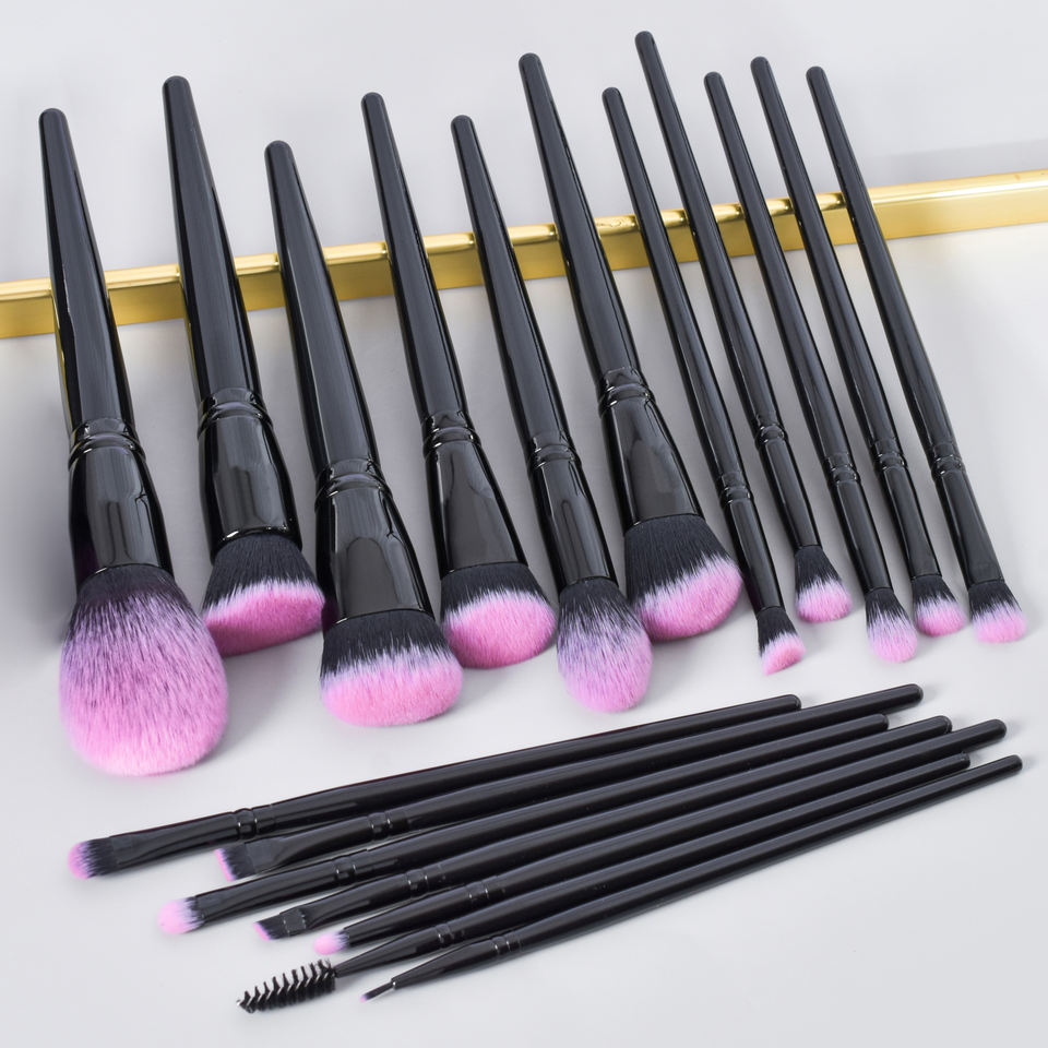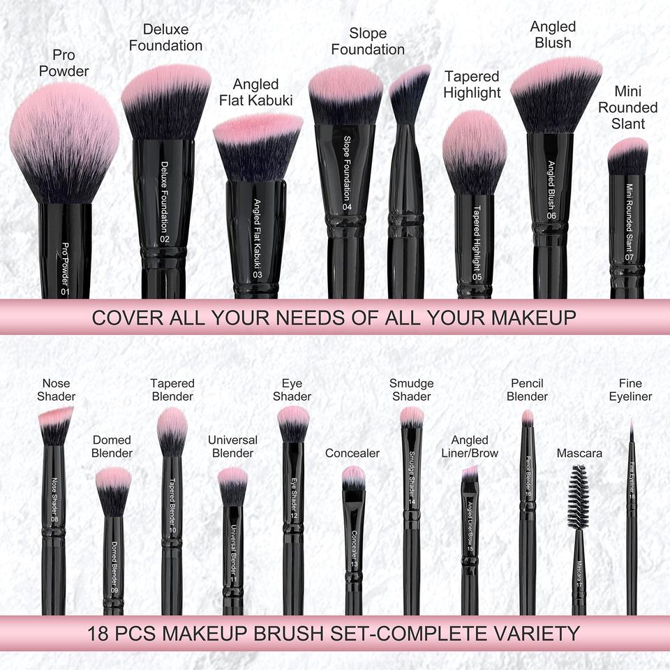 DailyQueen 18 Pièces Noir Rose Brillant Pinceaux de Maquillage Kit Luxe Marque Privée Professionnel avec Porte-Pinceaux Logo Personnalisé