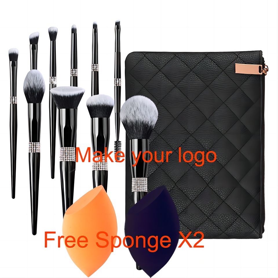 DailyQueen Glossy Black Rhinestone Makeup Brushes Set Diamond Glitter Sparkling Crystal Quartz Makeup Brush for Shaving Brush