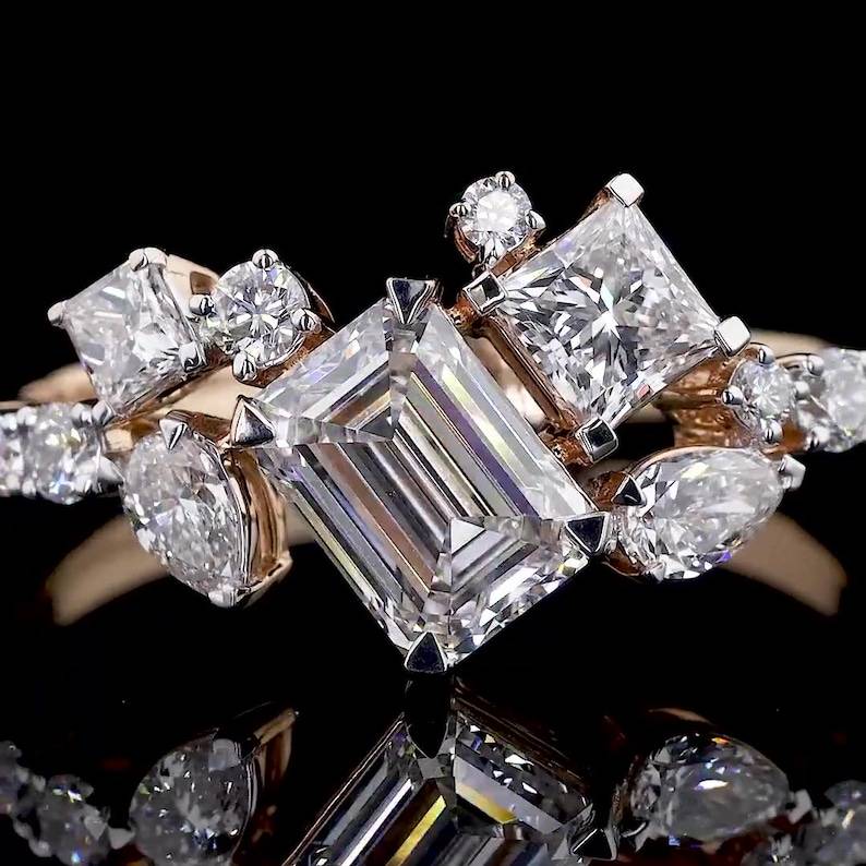 name or words:Multi Shapes Cut Diamond Cluster Ring