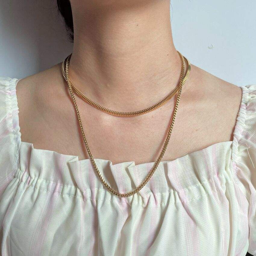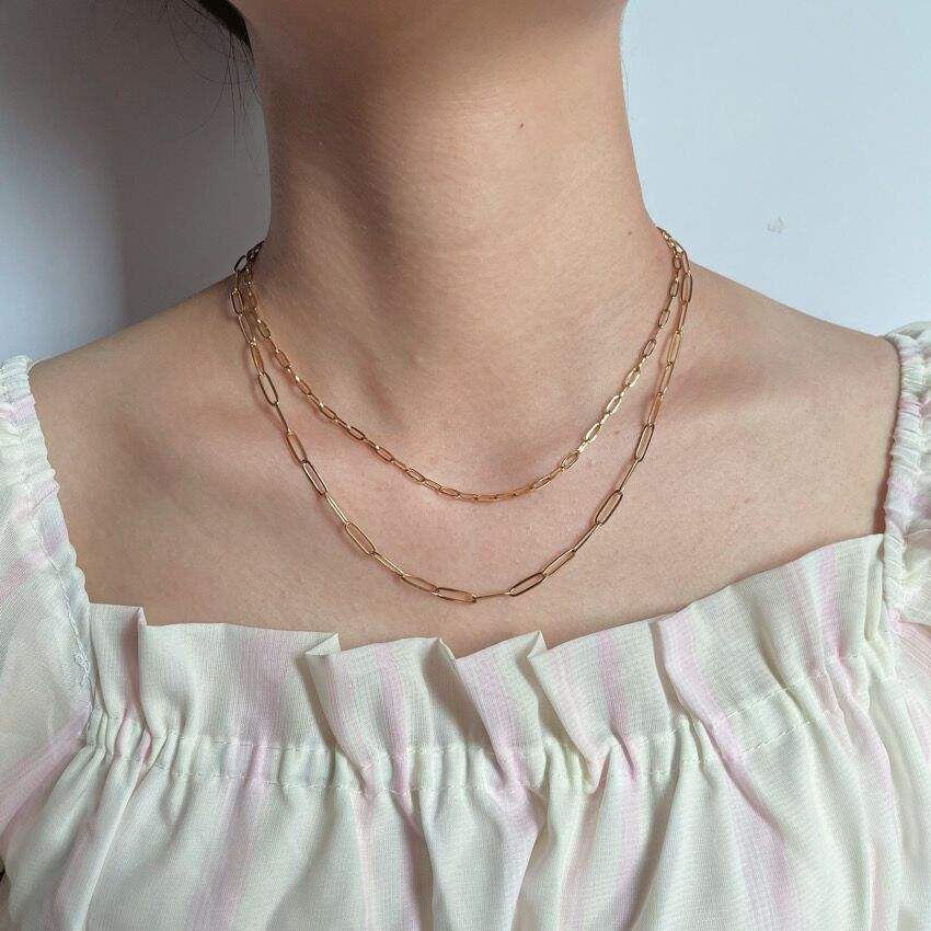 Chaîne de trombone délicate en or 18 carats collier chaînes cubaines en acier inoxydable sans ternissement trombone chaîne à maillons à chevrons torsadés