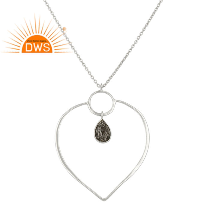 Collection Dainty : Collier Pendentif en Argent Fin avec Pierre Précieuse Rutile Noir Faite à la Main – Collection Classique Dainty