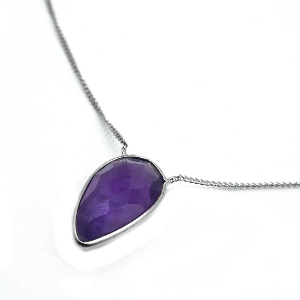 Dainty Minimalist Amethyst Choker Necklace Dainty Sterling Silver Wedding Jewelry with Rhodium Plating Gift Item