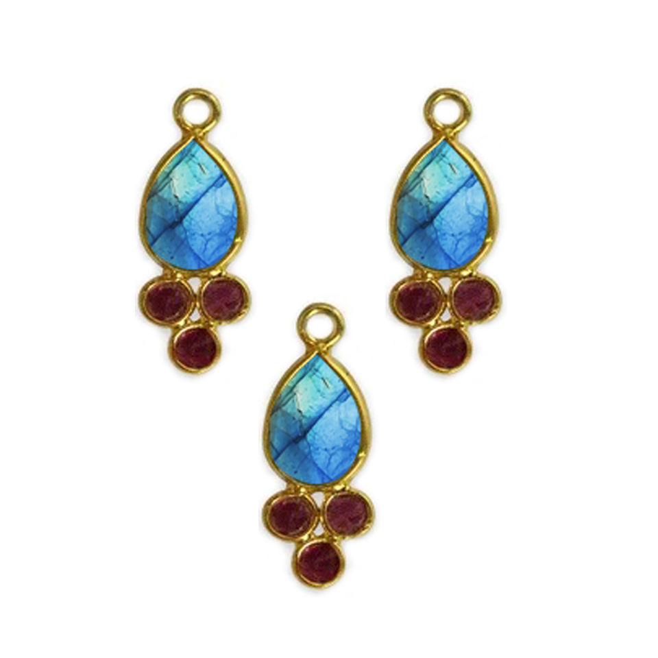 Dainty Natural Labradorite Gemstone Teardrop Shape Faceted Cut 10x8mm 925Sterling Silver Gold Vermeil Fancy Bezel Pendant Charm