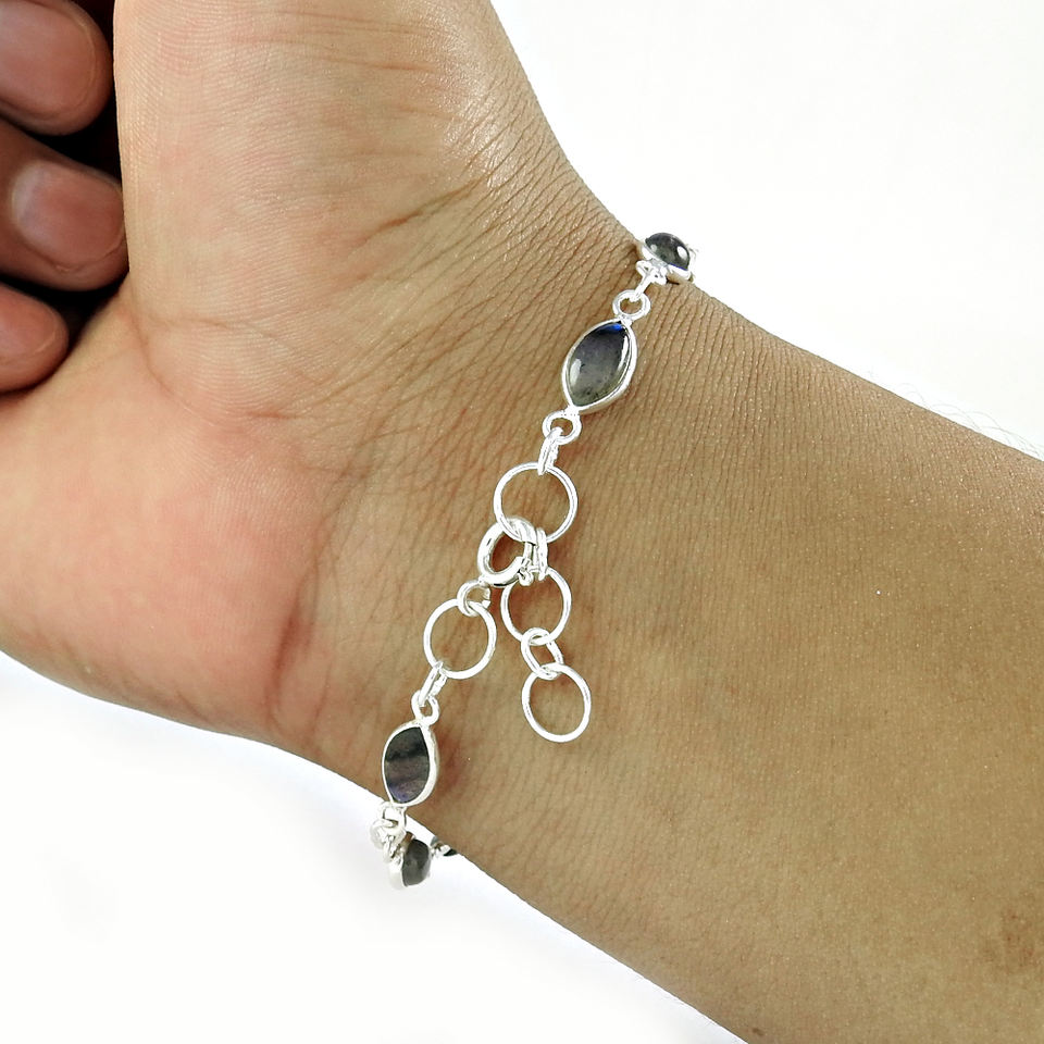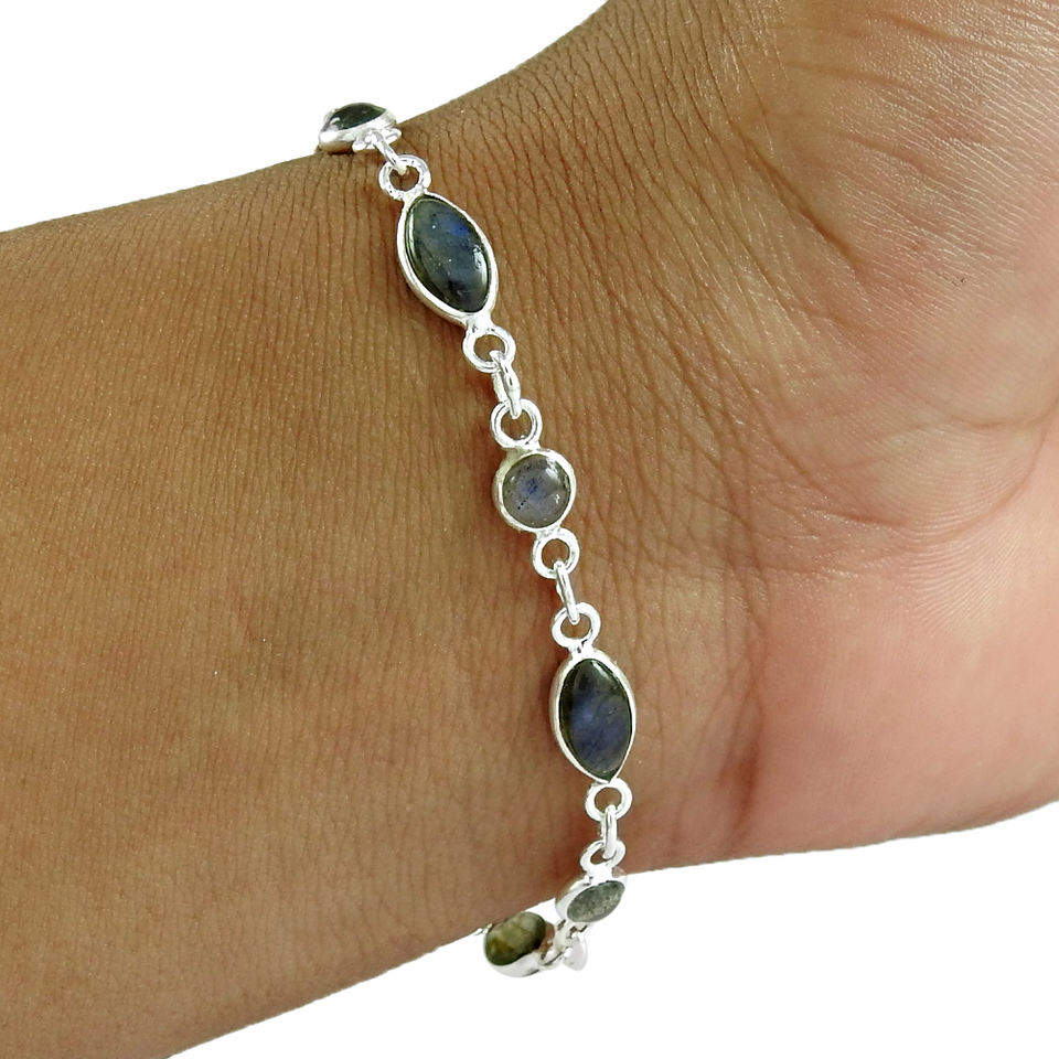 Cadeau de fête délicat en argent sterling 925 Labradorite naturelle Bracelet épais en pierres précieuses Bijoux faits à la main Fabricant en gros