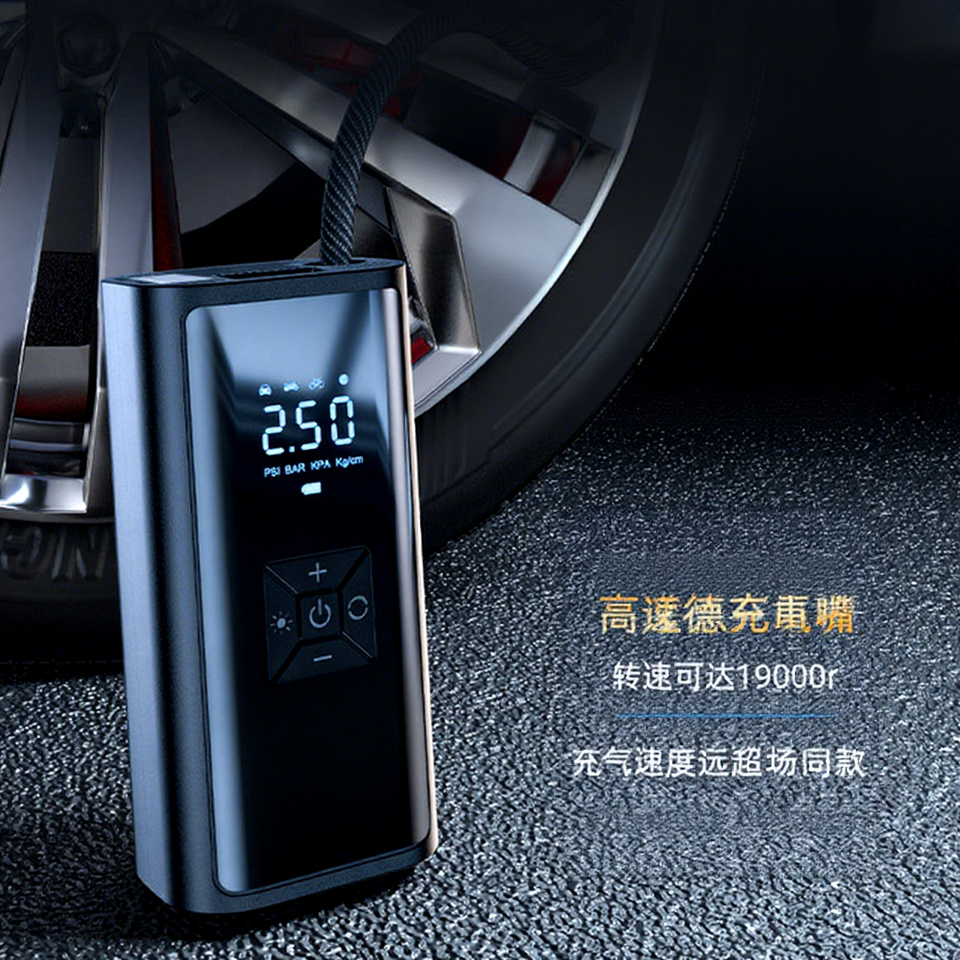 Gonfleur de pneus de voiture Daisheng 12V, mini portable, écran LCD, débit d'air de 25L/min, pompe monocylindre, cordon d'alimentation de 3m, utilisation automobile