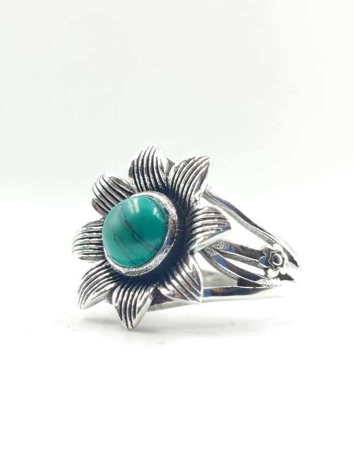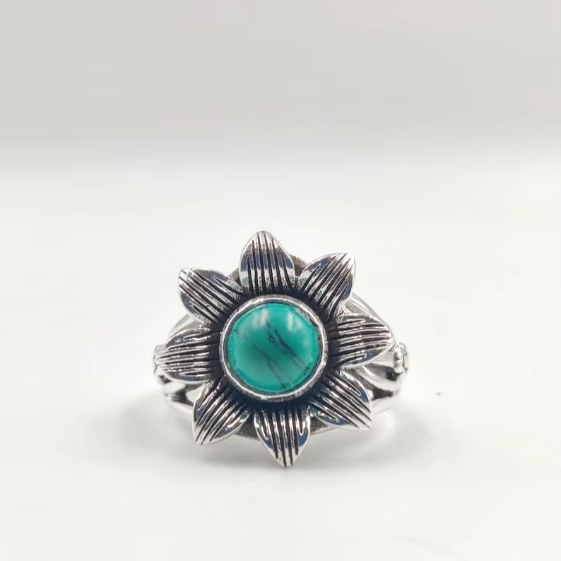 Bague Fleur de Marguerite Turquoise Certifiée IGI Faite à la Main en Argent Sterling 925 Style Bohème Art Déco Cadeau de Festival pour Femme