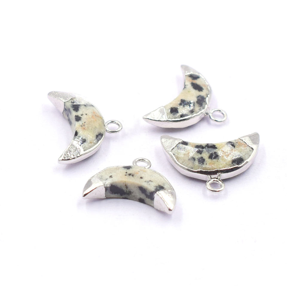 Nom du produit:Pendentif en Jaspe Dalmatien en Forme de Lune Plaqué Argent
