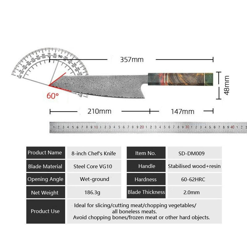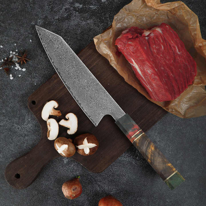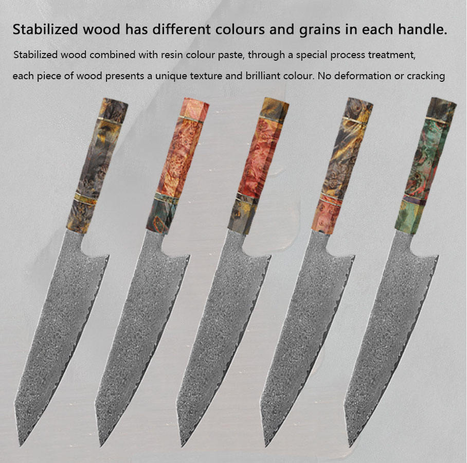 Couteau de chef Damas VG10, couteau de cuisine Damas avec boîte cadeau, manche en bois stabilisé, couteaux de cuisine pour la maison, cadeau