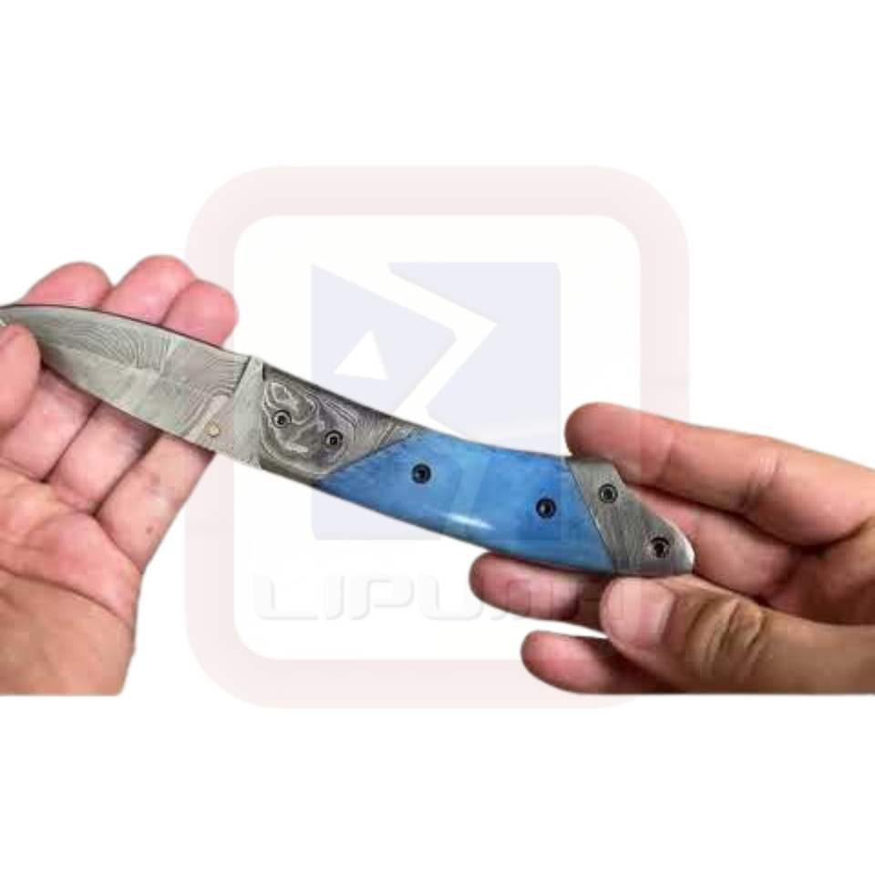 Damascus steel bolster with Dyed Camel Bonehandle material