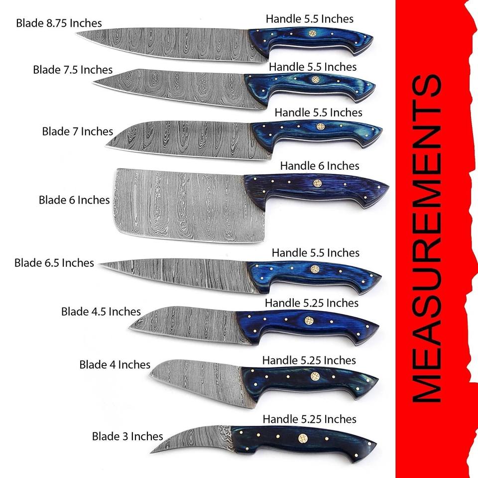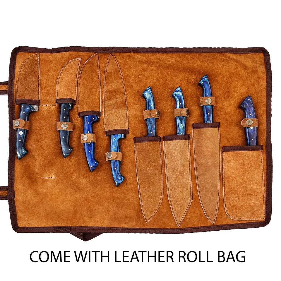 Ensemble de couteaux de chef en acier Damas avec manche en bois Pakka, huit pièces, forgés sur mesure, faits à la main, OEM, couteaux de cuisine professionnels avec sac