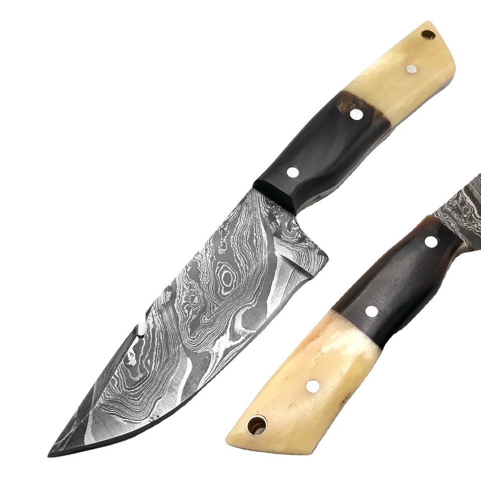 Couteau à lame fixe en acier de Damas, lame pleine, couteau de chasse, couteau d'extérieur, logo OEM personnalisé, vente en gros, couteaux faits à la main, qualité industrielle