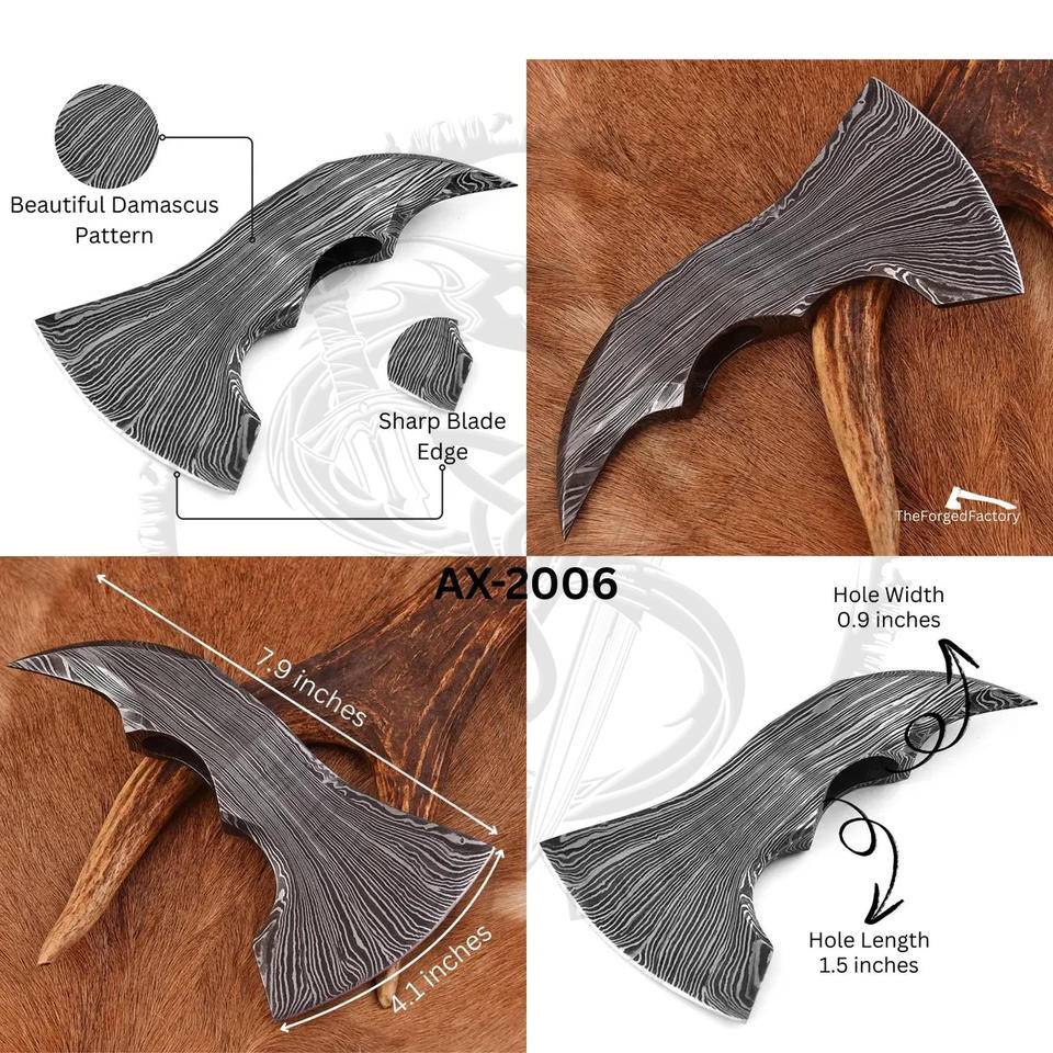 Tête de hache en acier de Damas forgée à la main, qualité supérieure, pour la chasse en plein air