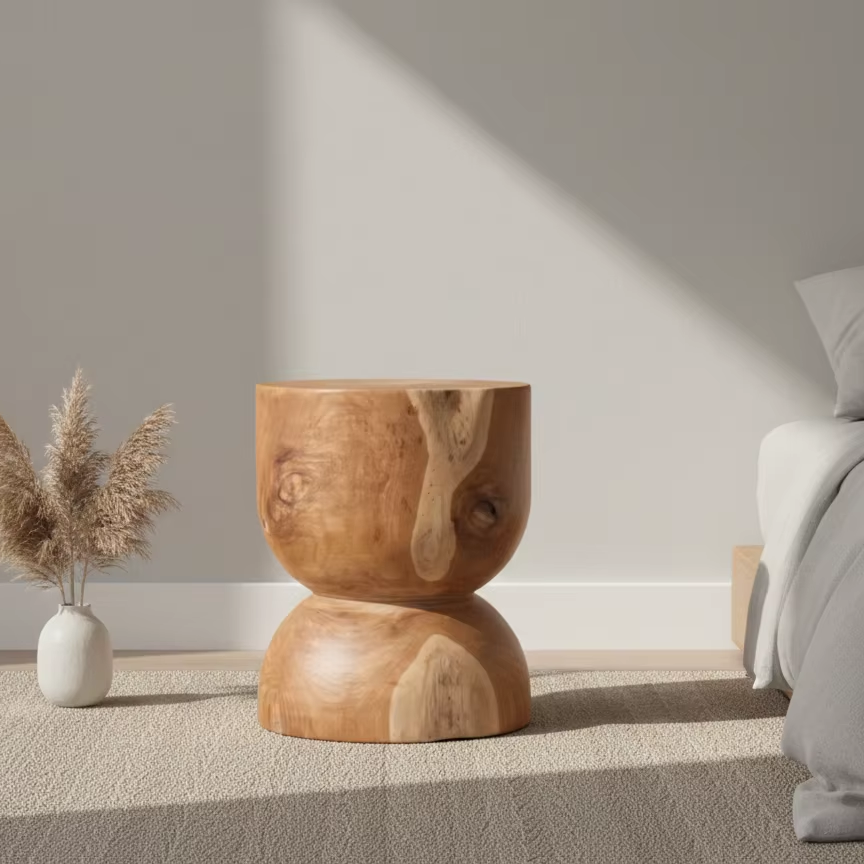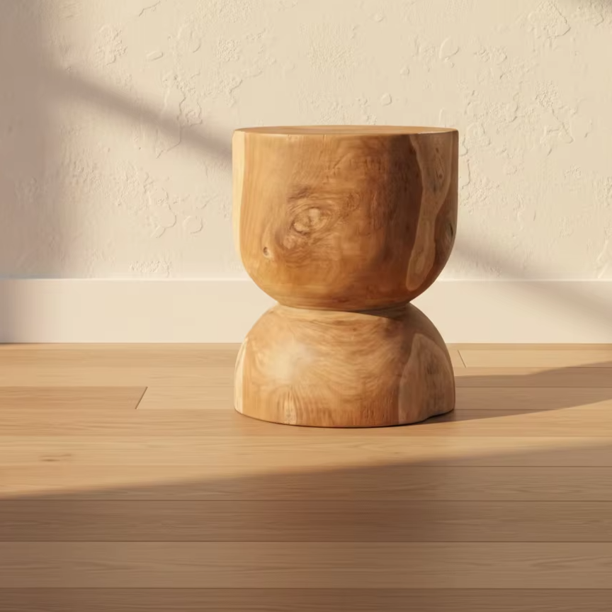 Tabouret de salon en teck d'inspiration scandinave avec finition écologique pour appartement, salon, villa et intérieurs commerciaux