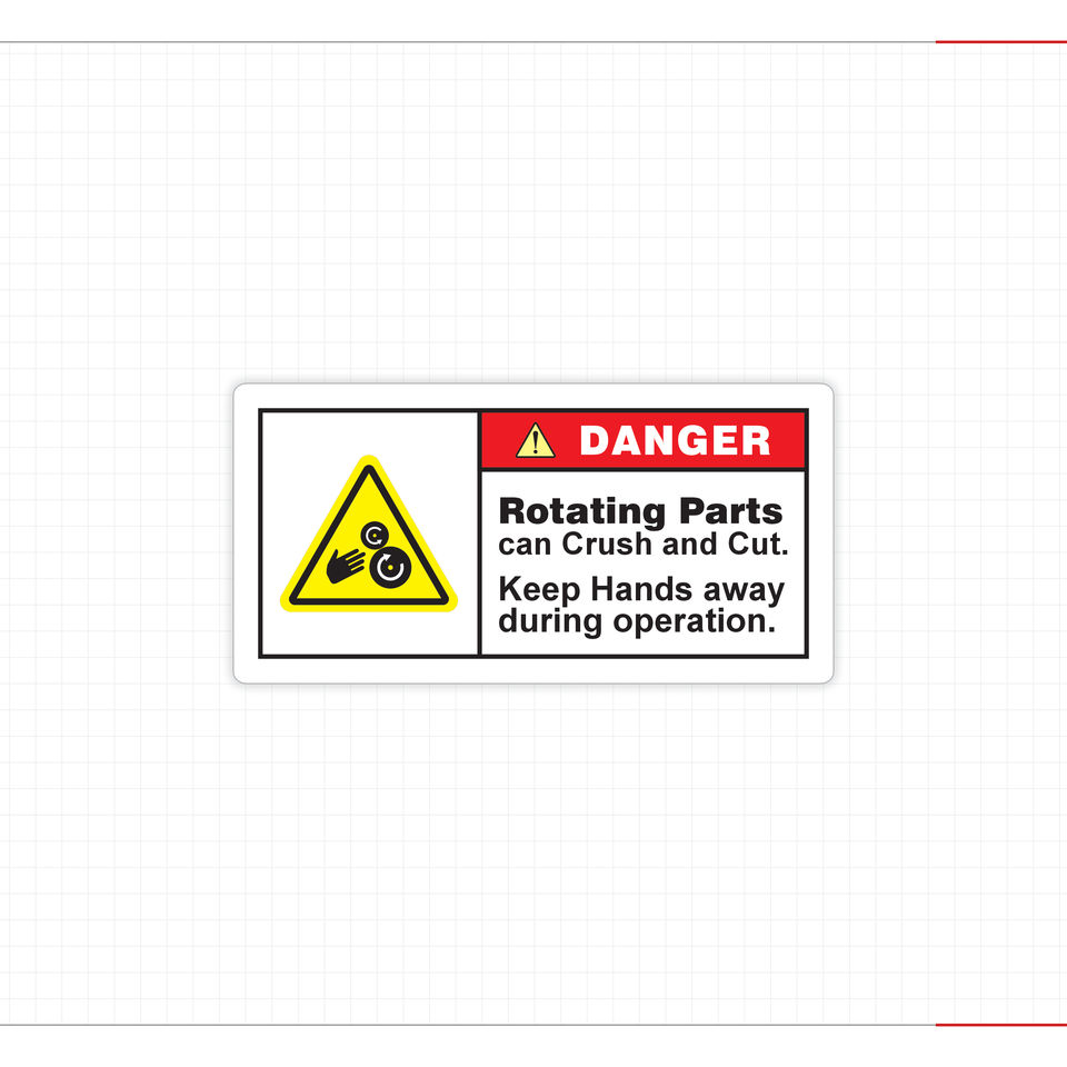 Panneau de sécurité « Danger : Rouleaux mobiles et pièces rotatives » – Autocollant d'avertissement industriel contre les risques de traction et de compression