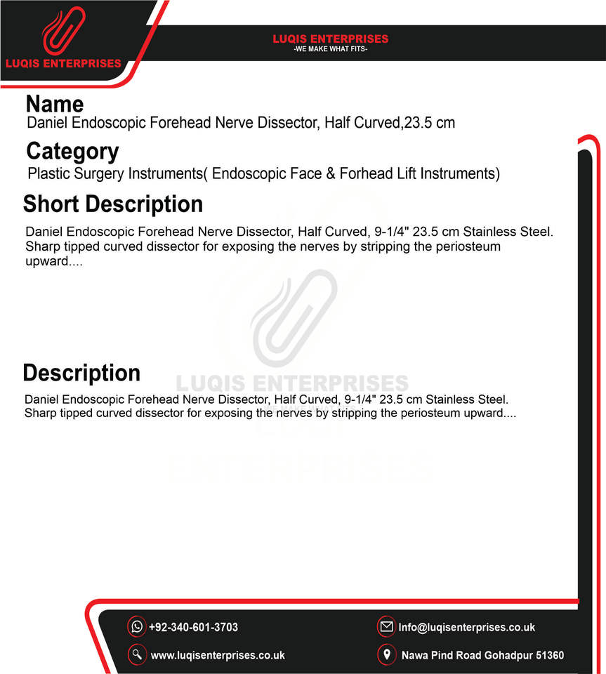 Dissecteur de nerfs frontal endoscopique Daniel, semi-courbé, 23,5 cm, en acier inoxydable, instrument chirurgical d'endoscopie