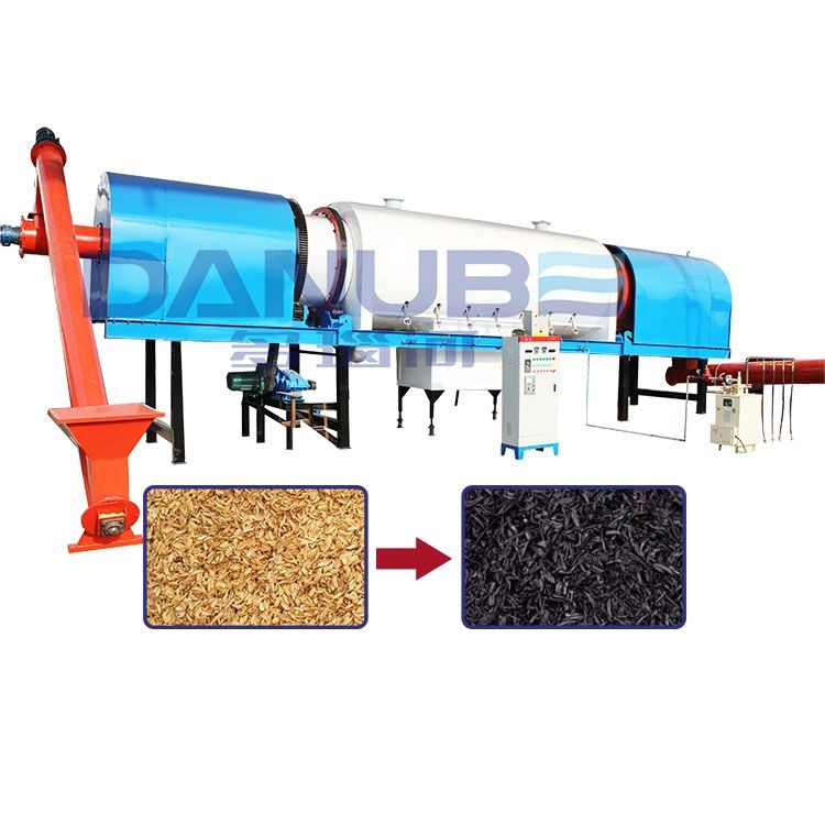 Ligne de production de charbon de bois de four à carbonisation continue rotatif Danube Brand Paddy Straw Biochar Riz Husk Husk