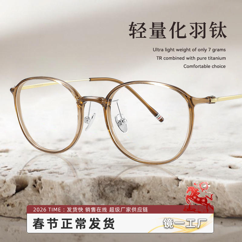 Monture de lunettes ronde Danyang 9013 en titane pur, légère, monture complète pour femmes, verres PC marron, design simple