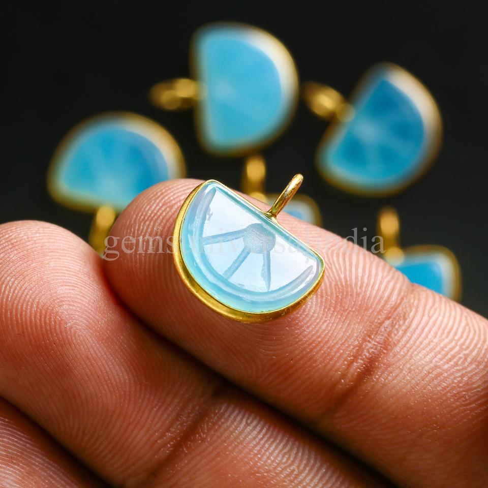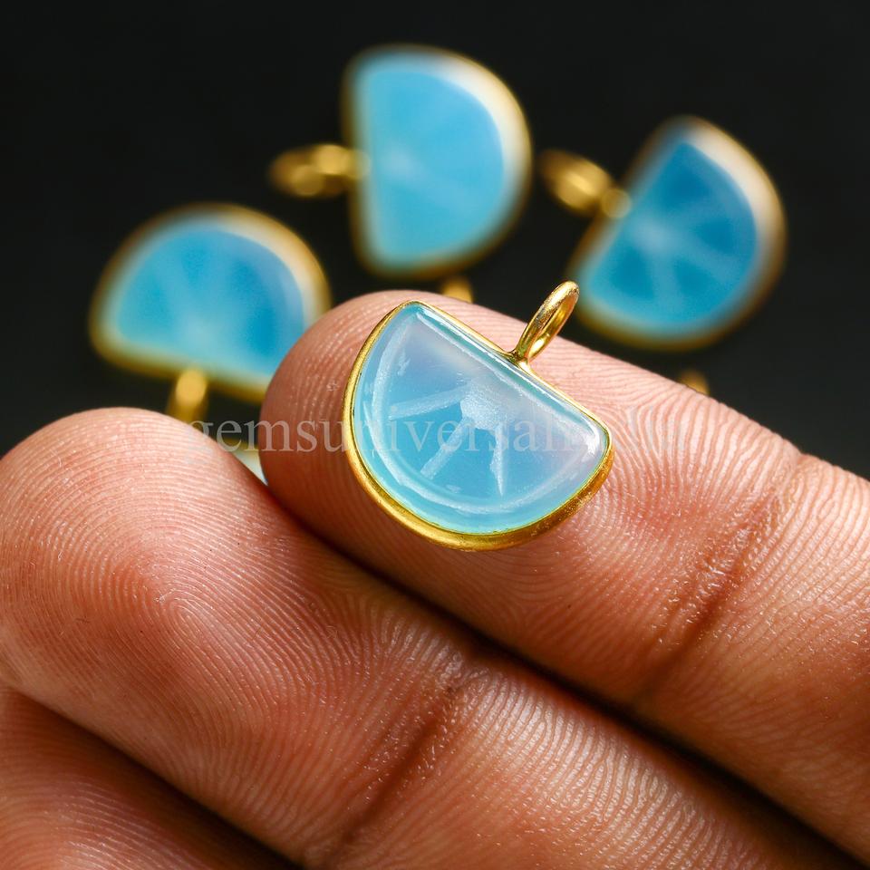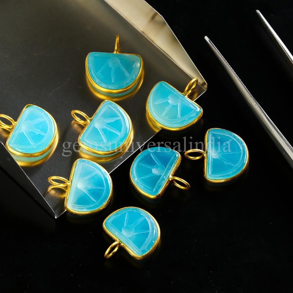 Product name:Natural Dark Blue Chalcedony Carved Orange Fruit Gemstone Pendant