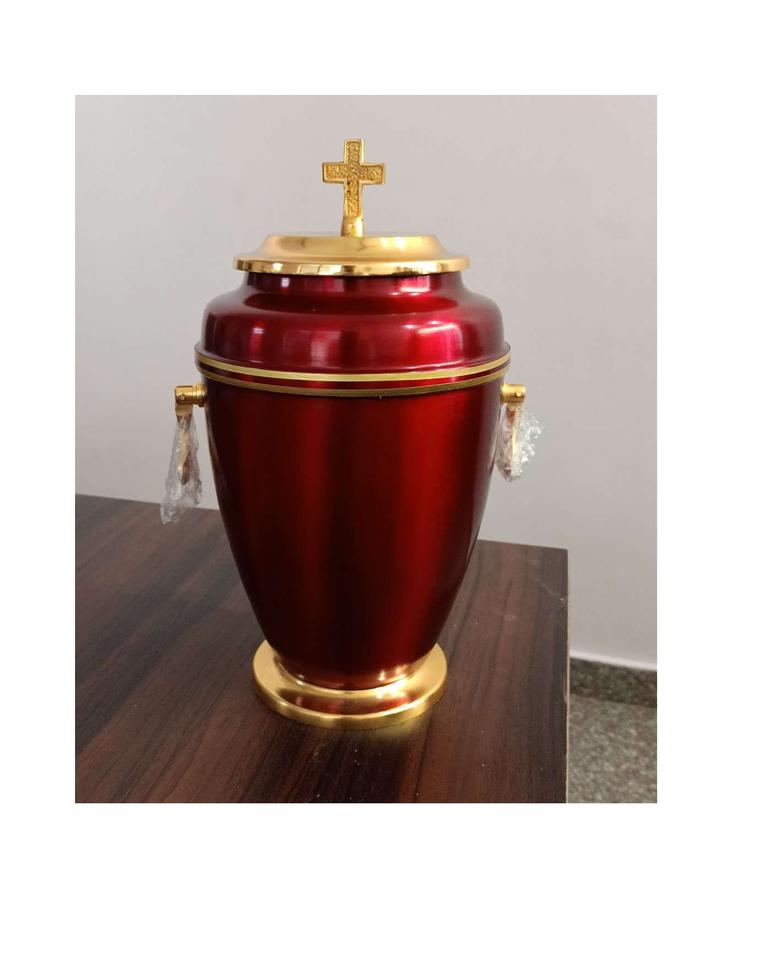 Dark Blue Color Gold Iron Cross on Top Cremation Urn for Ashes