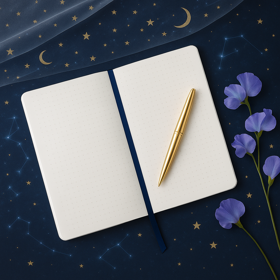 Carnet de notes bleu foncé Constellation avec étoiles argentées, couverture rigide 160 g/m², format A5, design Astrologie et Lune, journal intime, cadeau