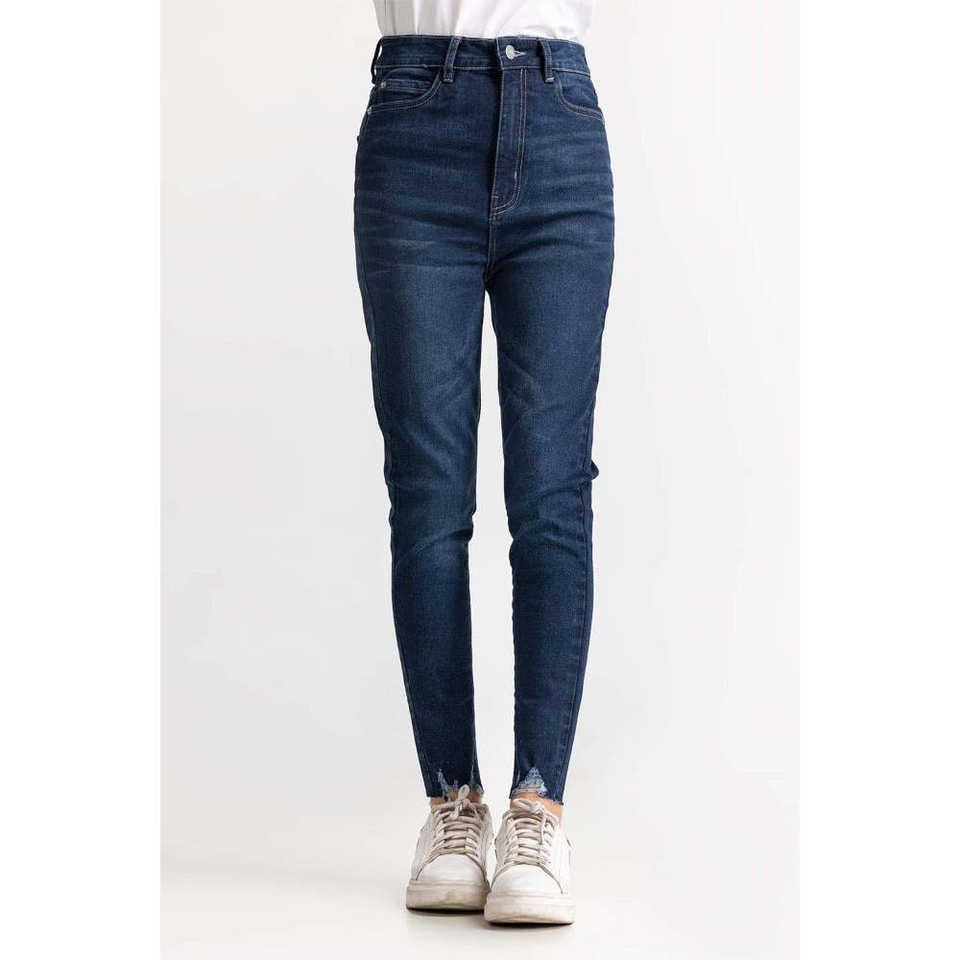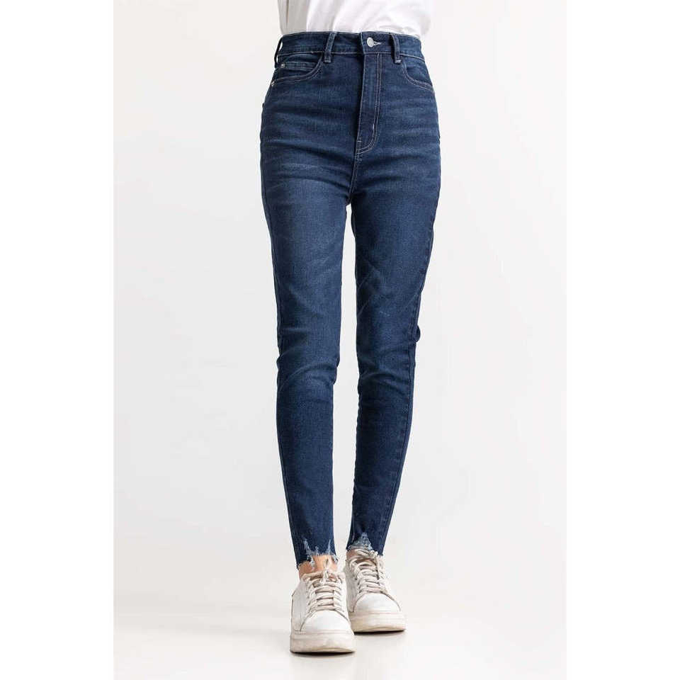 Jean en denim bleu foncé taille haute basique WM-JNS-SS24-003 – Élément de mode simple