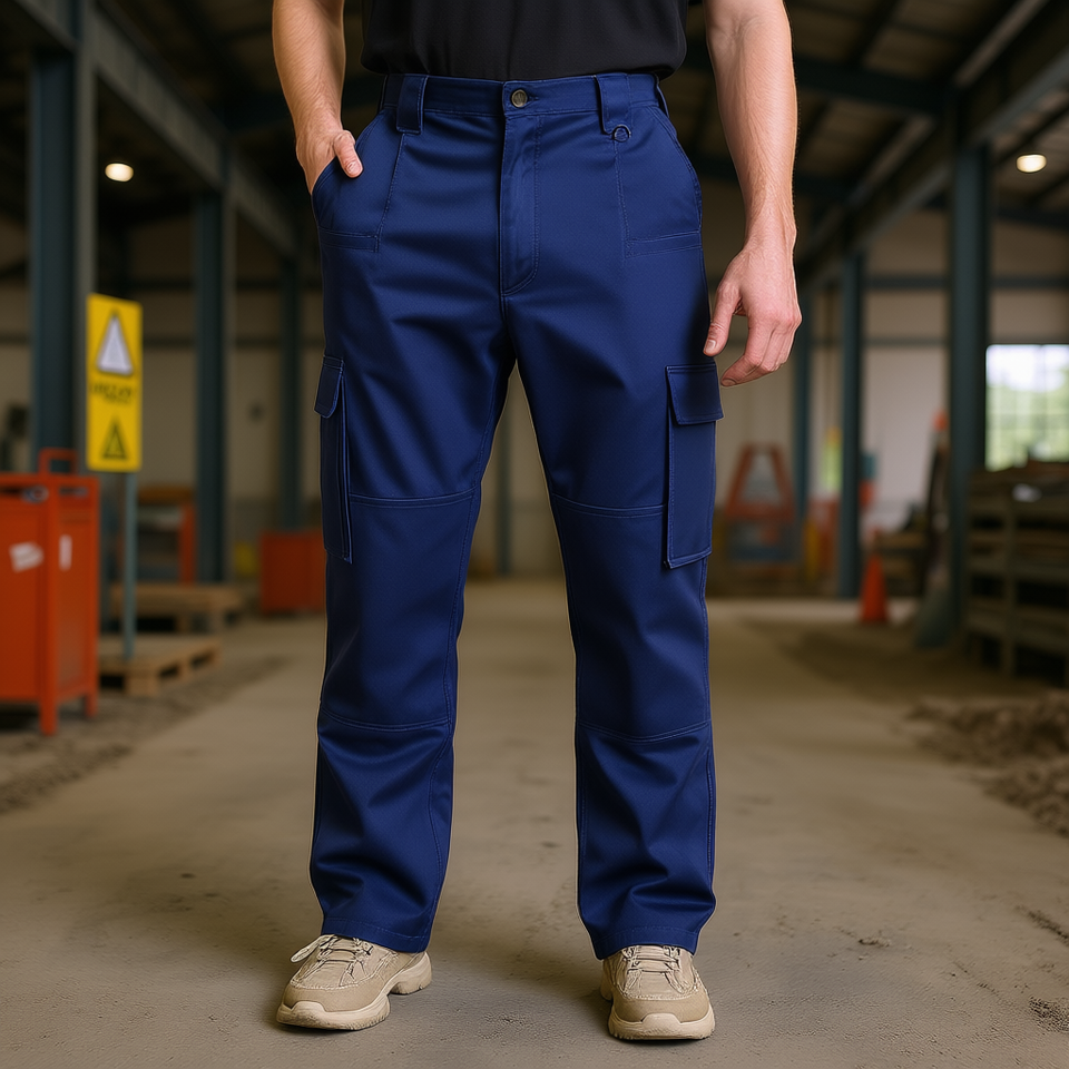Pantalon ignifuge bleu foncé taille M pour homme, multi-poches, vêtements de sécurité, coupe classique