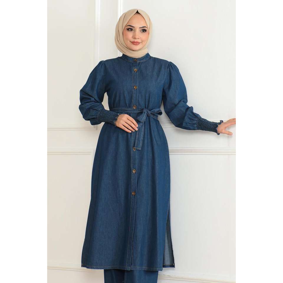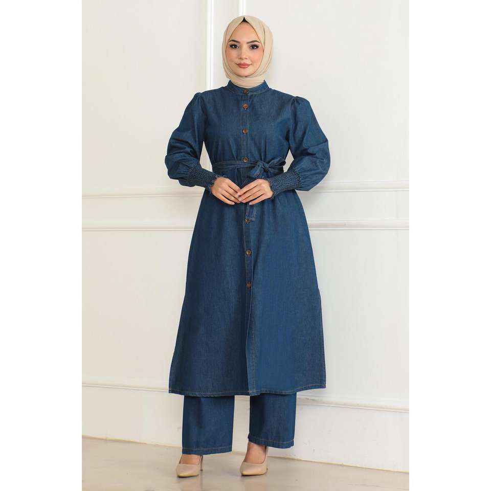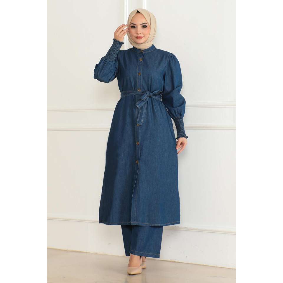 Ensemble de jeans déchirés bleu foncé 19227, haut en coton à manches longues et col rond décontracté pour femmes, taille XS à XL