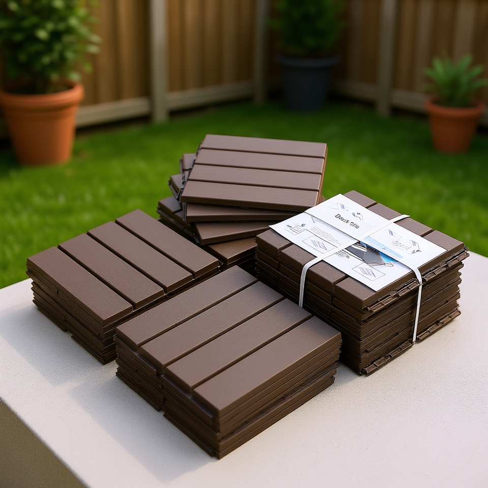 Dalles de terrasse emboîtables brun foncé 12x12 pouces en composite plastique pour extérieur toutes saisons, design quatre lattes