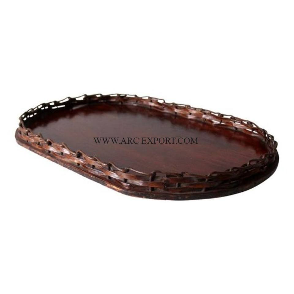 Décoration de table de couleur marron foncé plateaux de service alimentaire conception attrayante maison vaisselle dessus de table plateaux de service alimentaire à vendre