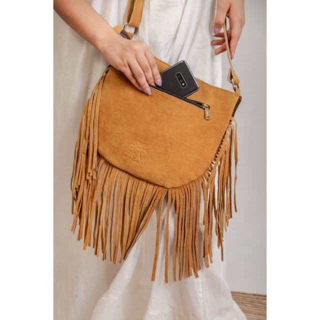 Sac à bandoulière en cuir de vachette marron foncé pour femmes Preppy bohème frangé Western sac à main géométrique hiver/printemps robe à bandoulière