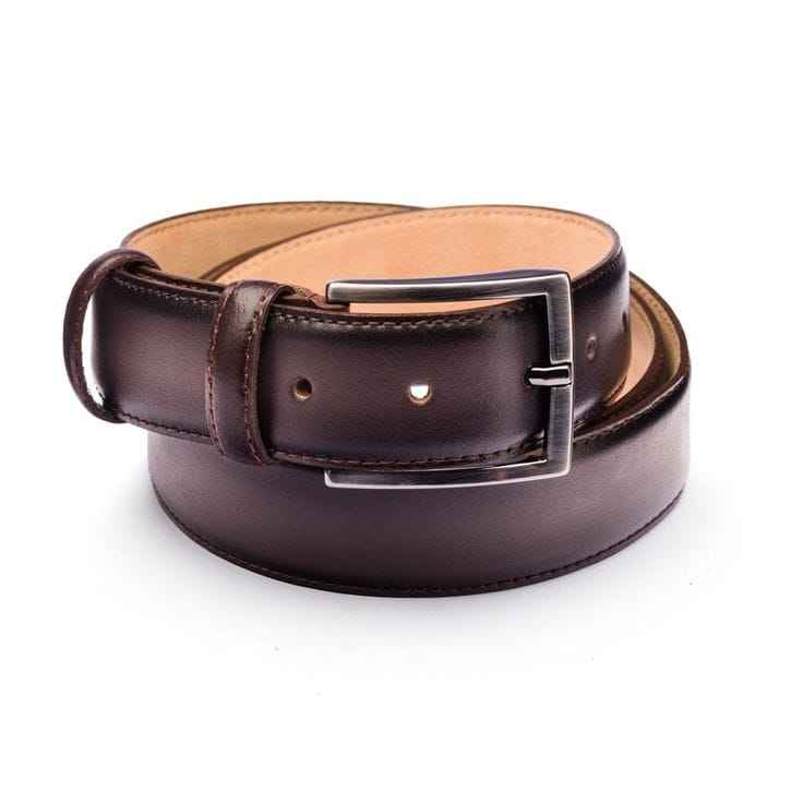 Dark Brown Genuine Leather Belt with Nickel Buckle - Premium Handmade Office Belt for Men