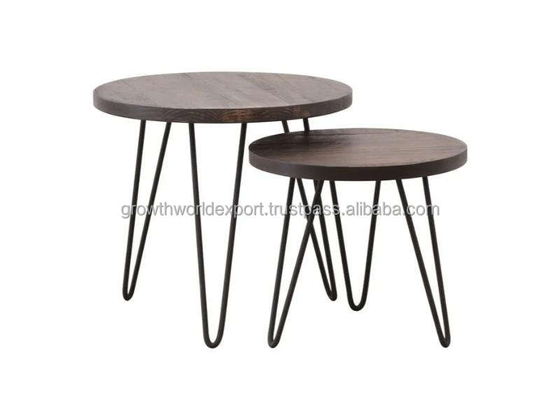 Ensemble de tables gigognes circulaires en bois de manguier brun foncé, 2-3 pieds, tables basses modernes pour salon, marque Shamil 2026, nouveauté