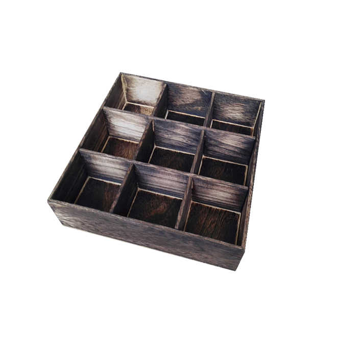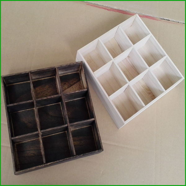 Forme:Boîte carrée en bois sans couvercle, boîte de rangement divisée
