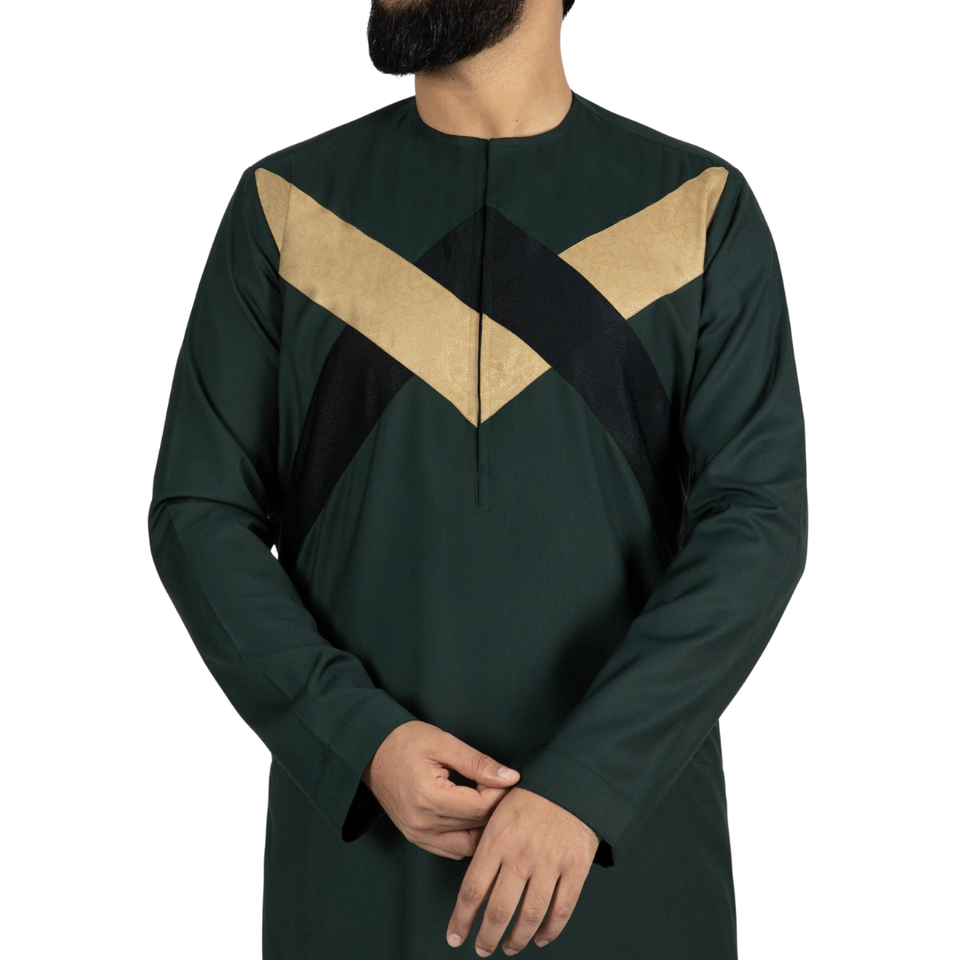 Dark Forest Green Men Thobe V Shape Design Saudi Jubba Islamic Clothing Arabic Robe For Men Kandura Dishdasha Dress