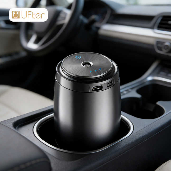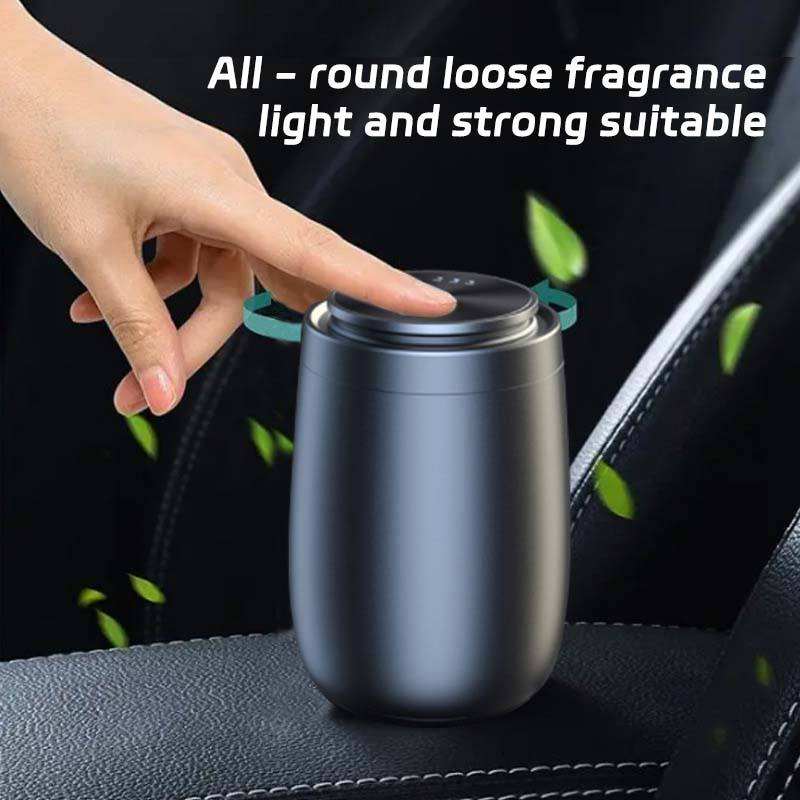 Diffuseur d'arômes pour voiture gris foncé, utilisant un diffuseur de parfum ultrasonique, démarrage intelligent de la voiture, pulvérisation intelligente, grande capacité de 65 ml d'huile essentielle
