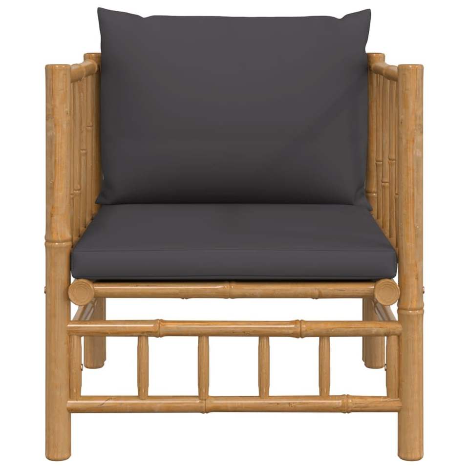 Dark Gray Cushions Bamboo Patio Sofa Chair