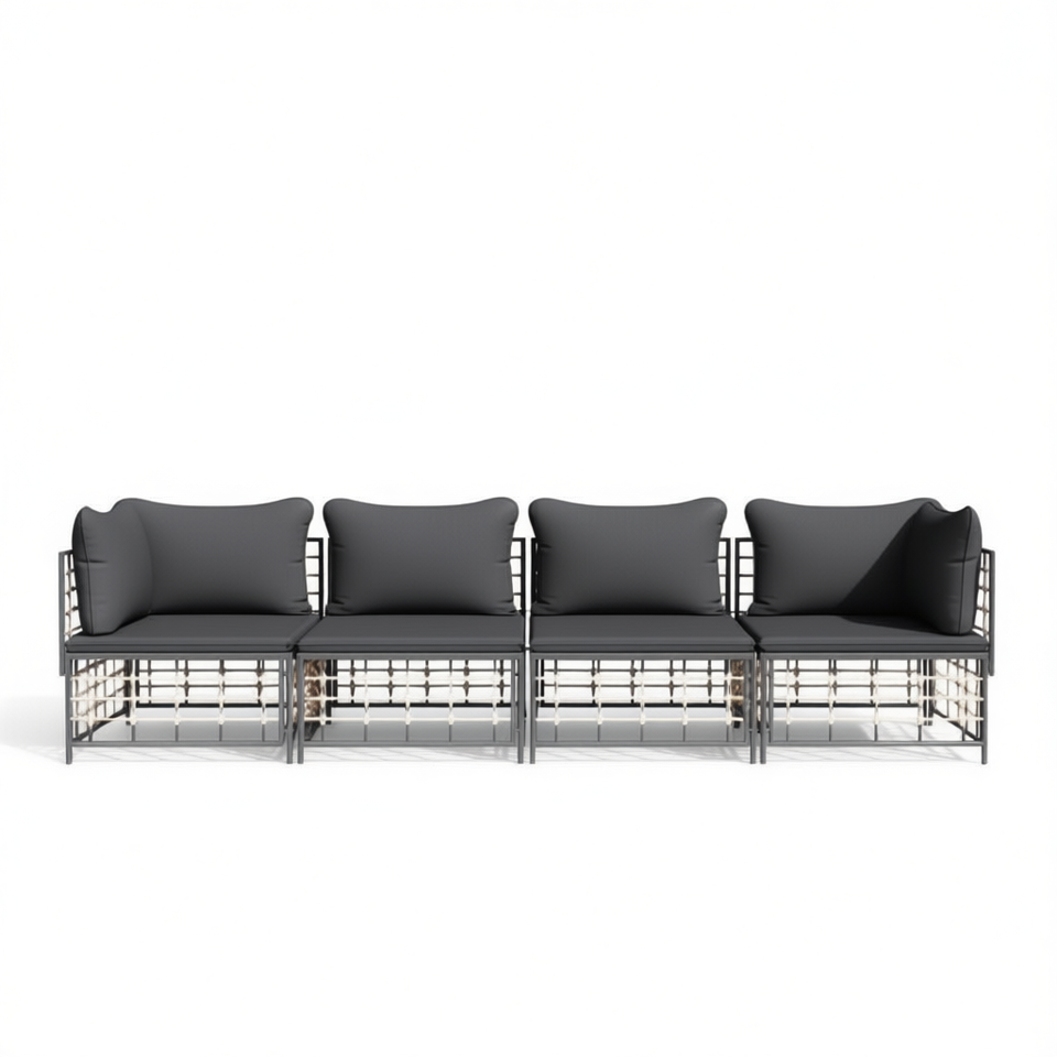 Ensemble de salon de jardin gris foncé 4 places, structure en métal, résistant aux intempéries, mobilier d'extérieur au design contemporain
