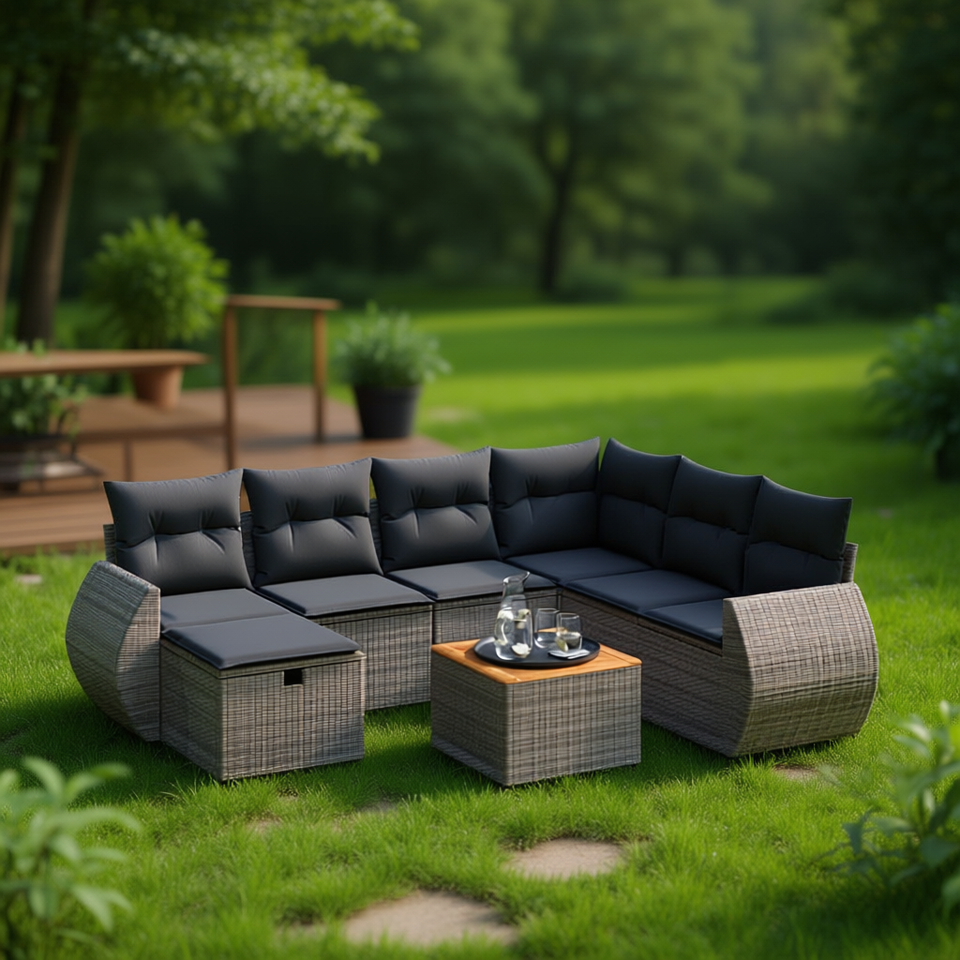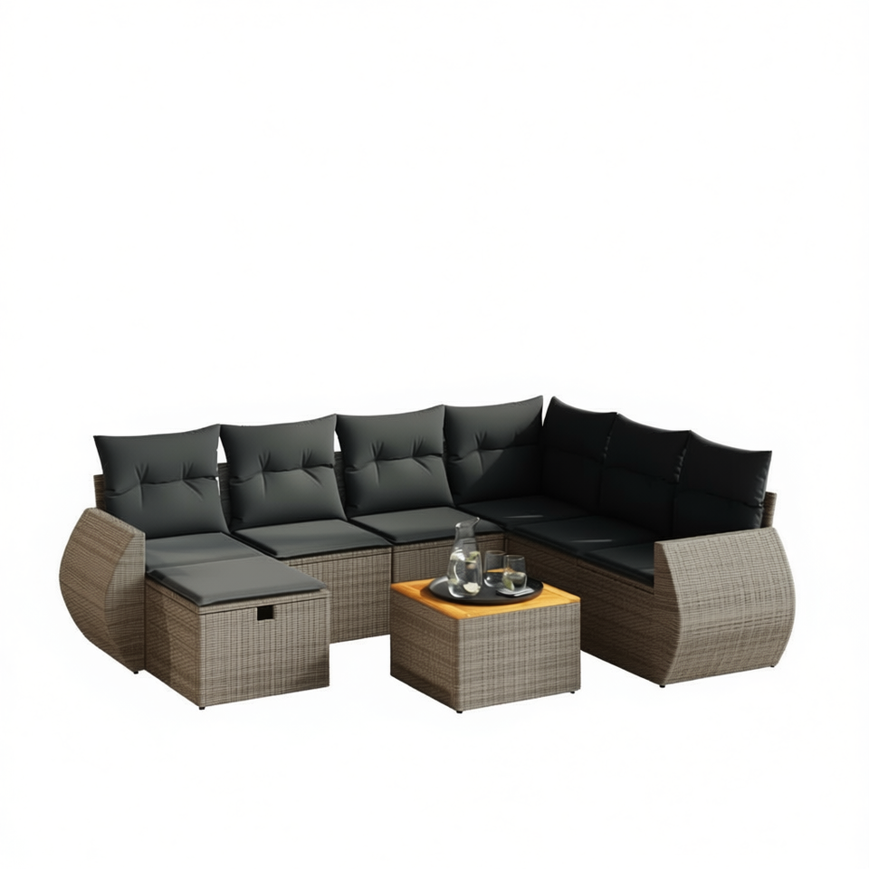 Ensemble de canapés de jardin en rotin gris foncé 6 places, mobilier d'extérieur résistant aux intempéries, design contemporain