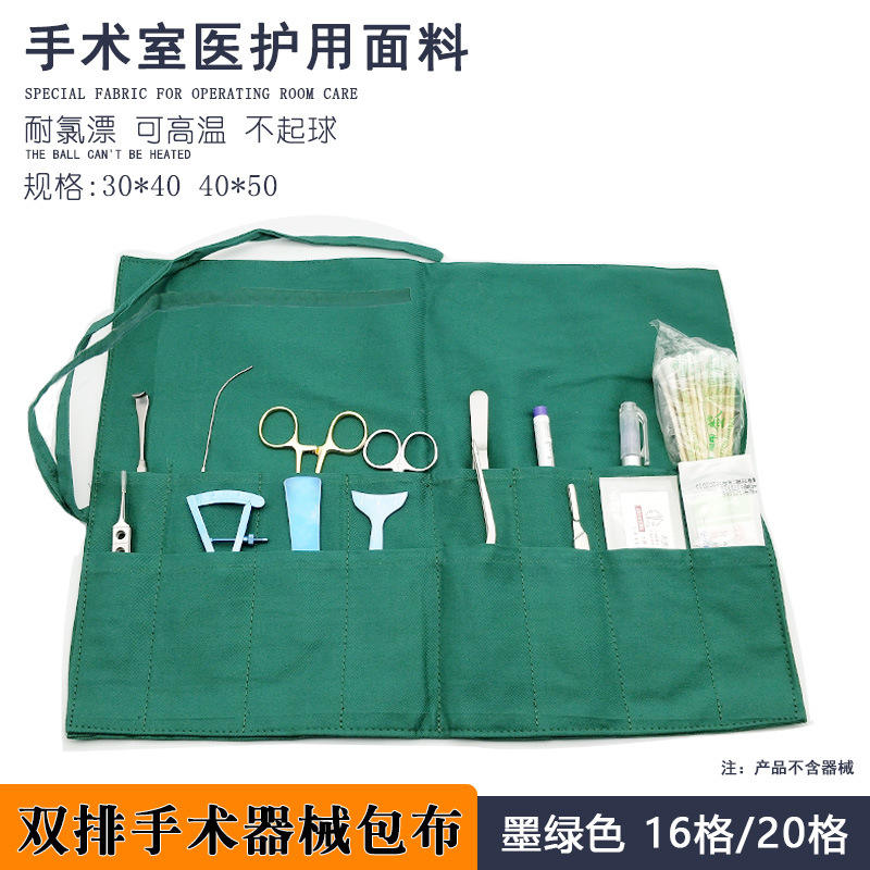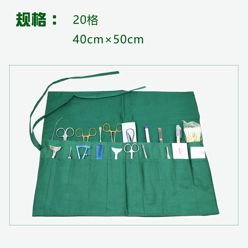 Sac de rangement pour instruments en coton vert foncé, 40x50cm, 20 compartiments pour outils chirurgicaux, durable