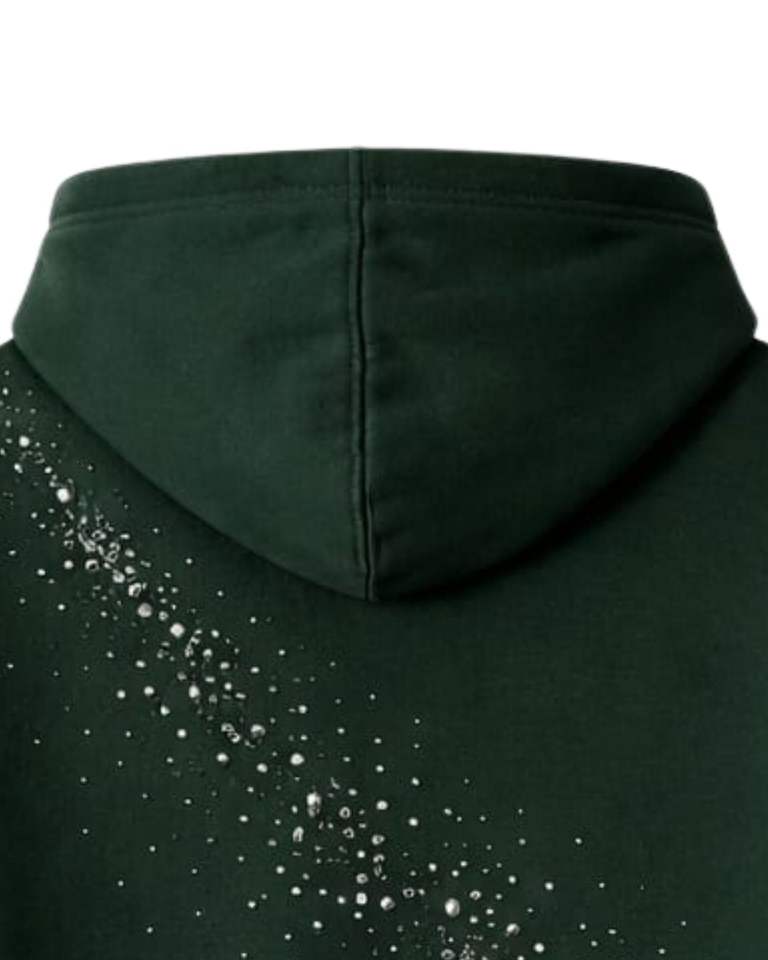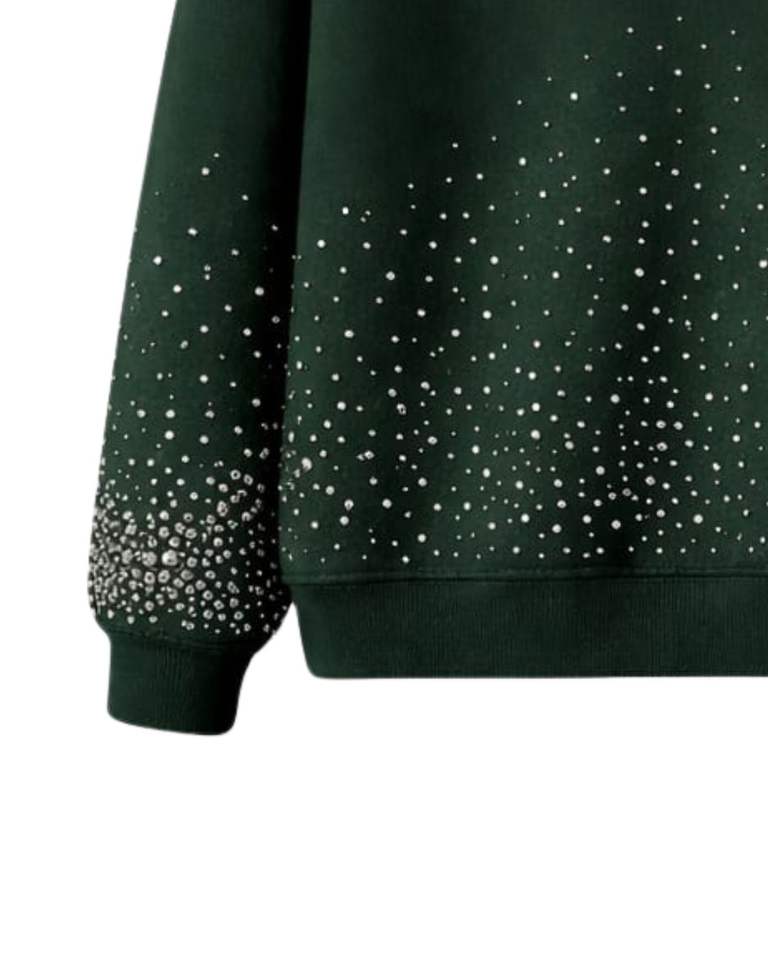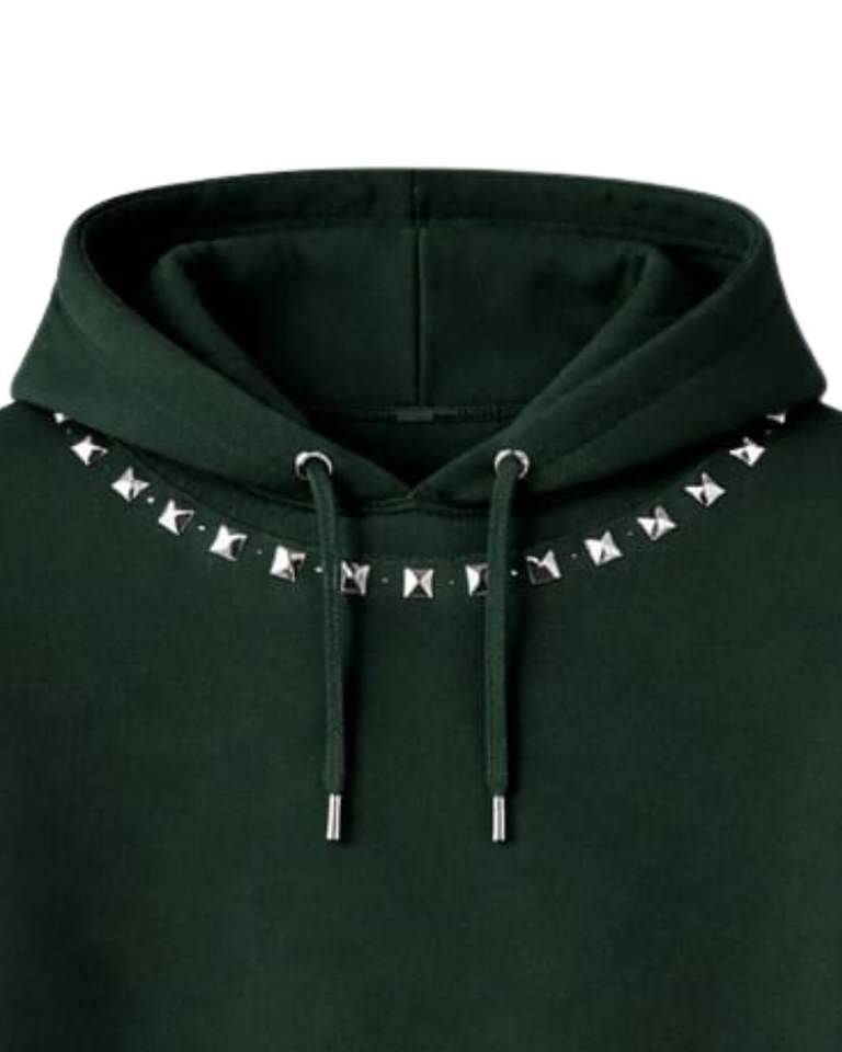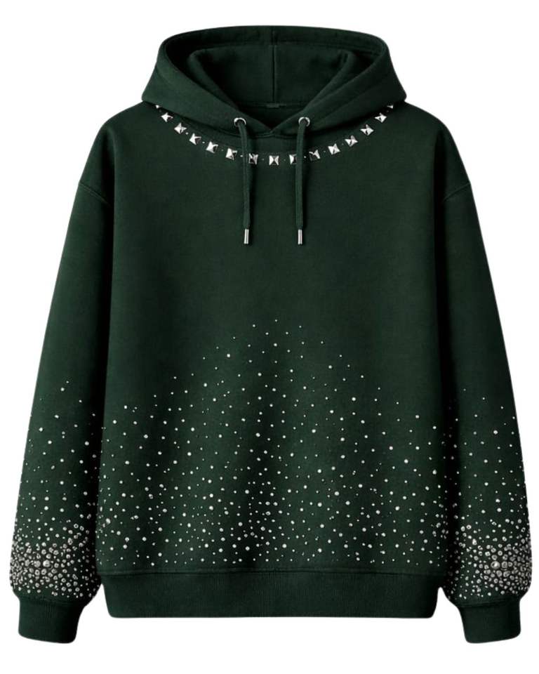 Sweat à capuche vert foncé orné de strass, coupe oversize, en molleton épais, avec poche kangourou, personnalisable, pour homme, style streetwear