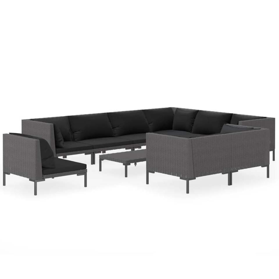 Ensemble de salon de jardin gris foncé en rotin avec structure en acier, 6 places, mobilier d'extérieur au design contemporain