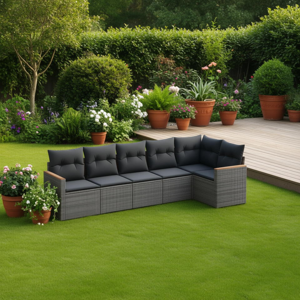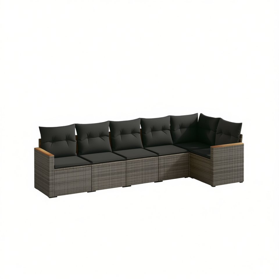 Ensemble de canapés de jardin en rotin PE gris foncé moderne, 6 places, mobilier d'extérieur, design contemporain, structure en acier