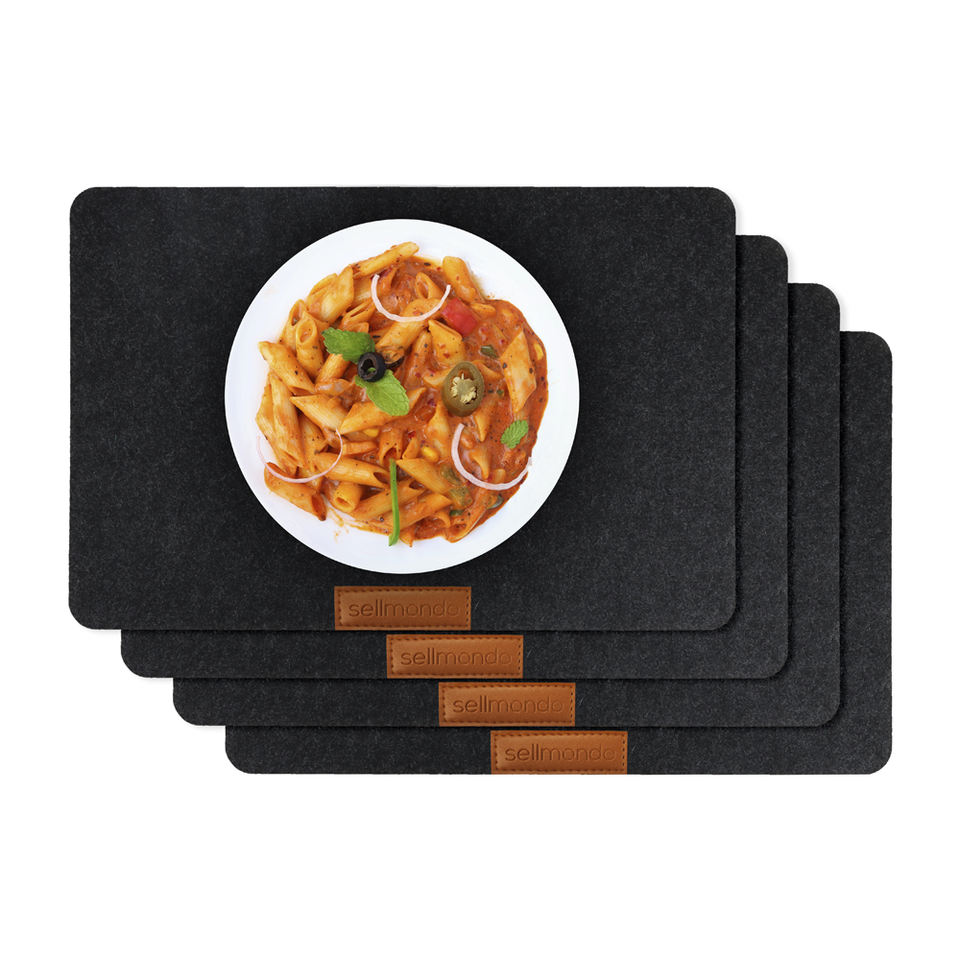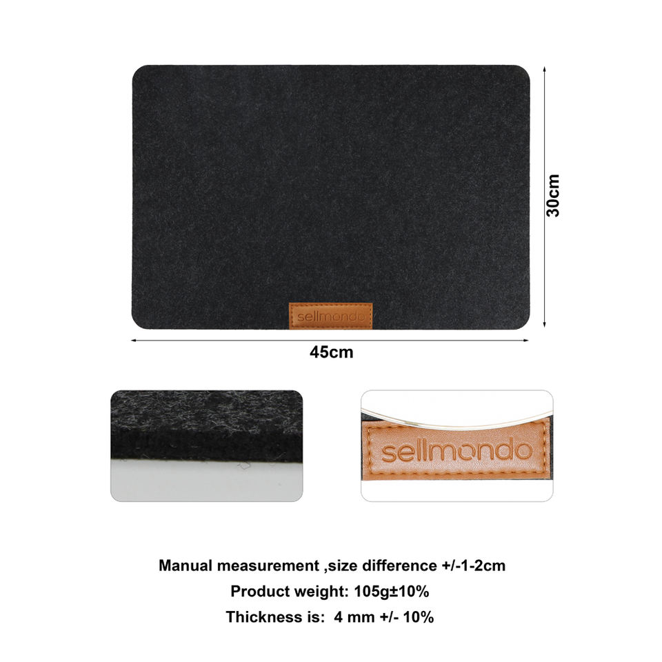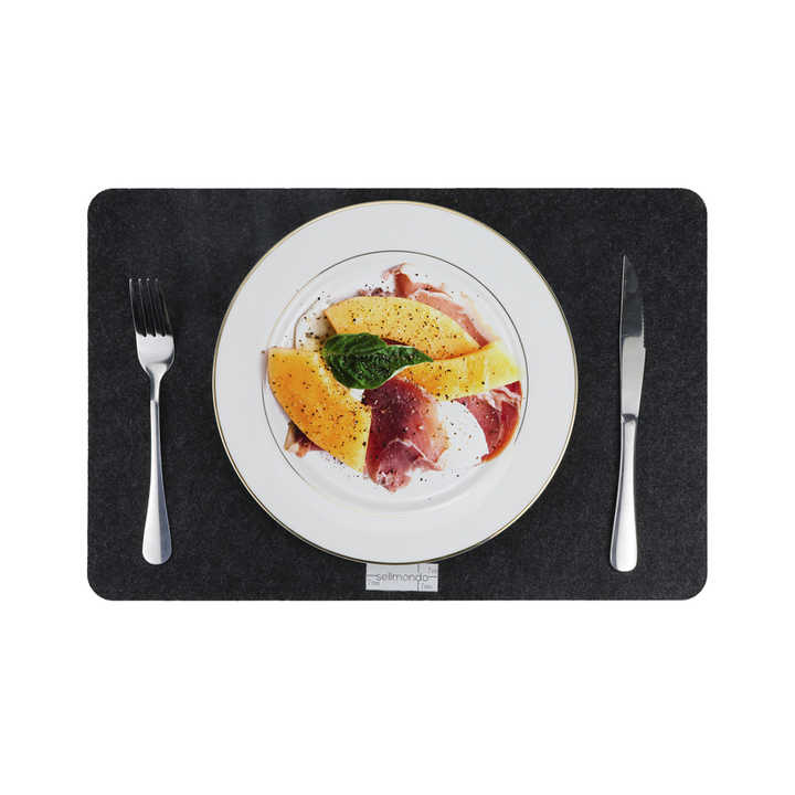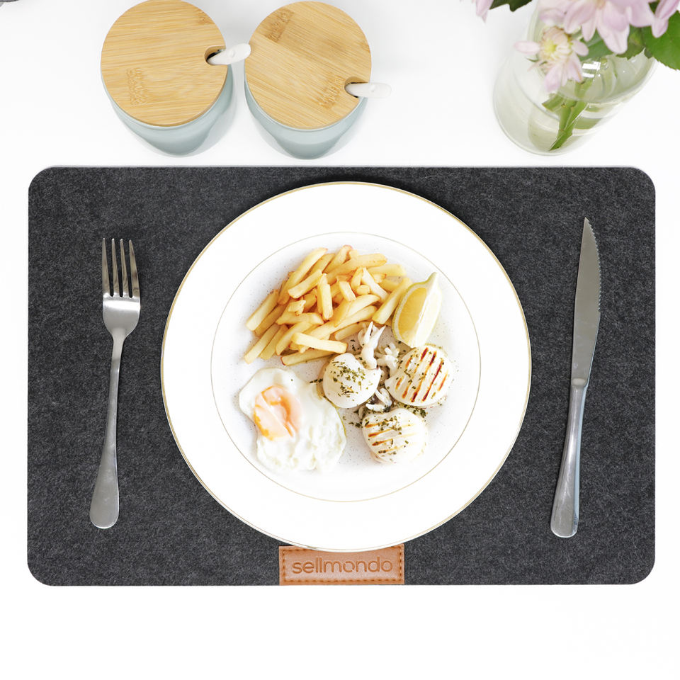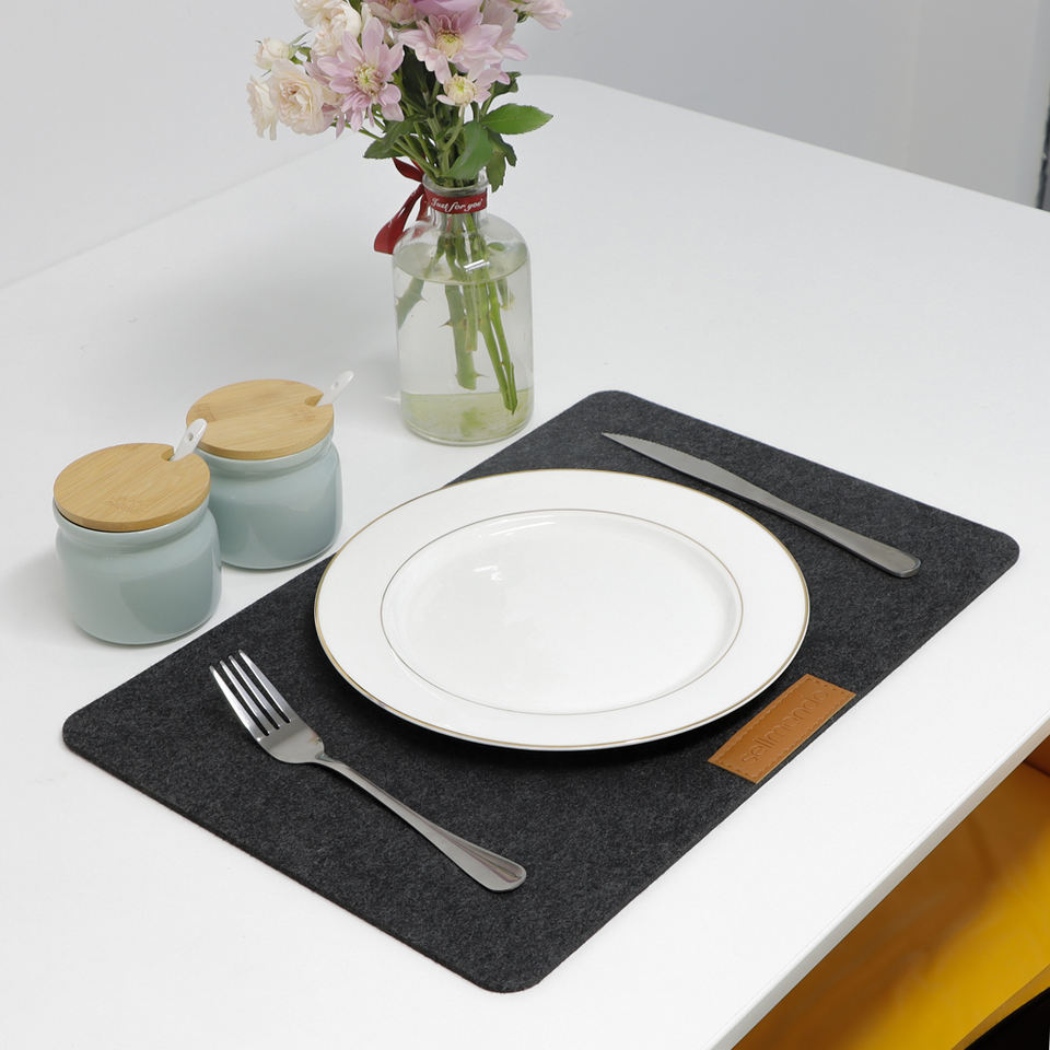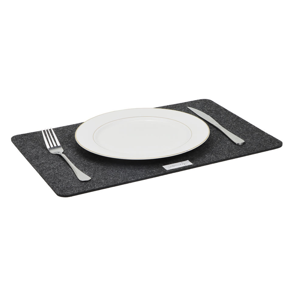 Set de table rectangulaire en feutre polyester gris foncé 45x30cm, durable, design moderne, impression personnalisée, découpe laser, dessous de verre promotionnel