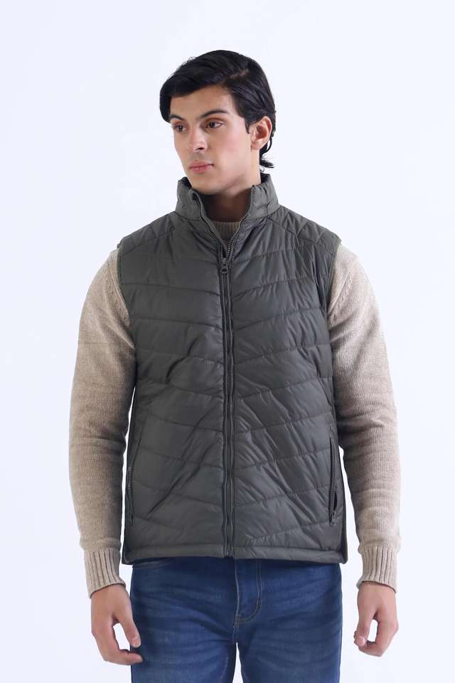 Dark Grey Quilted Puffer Vest Men's Insulated Jacket Waterproof Plus Size Zipper Closure Soft Shell Outerwear