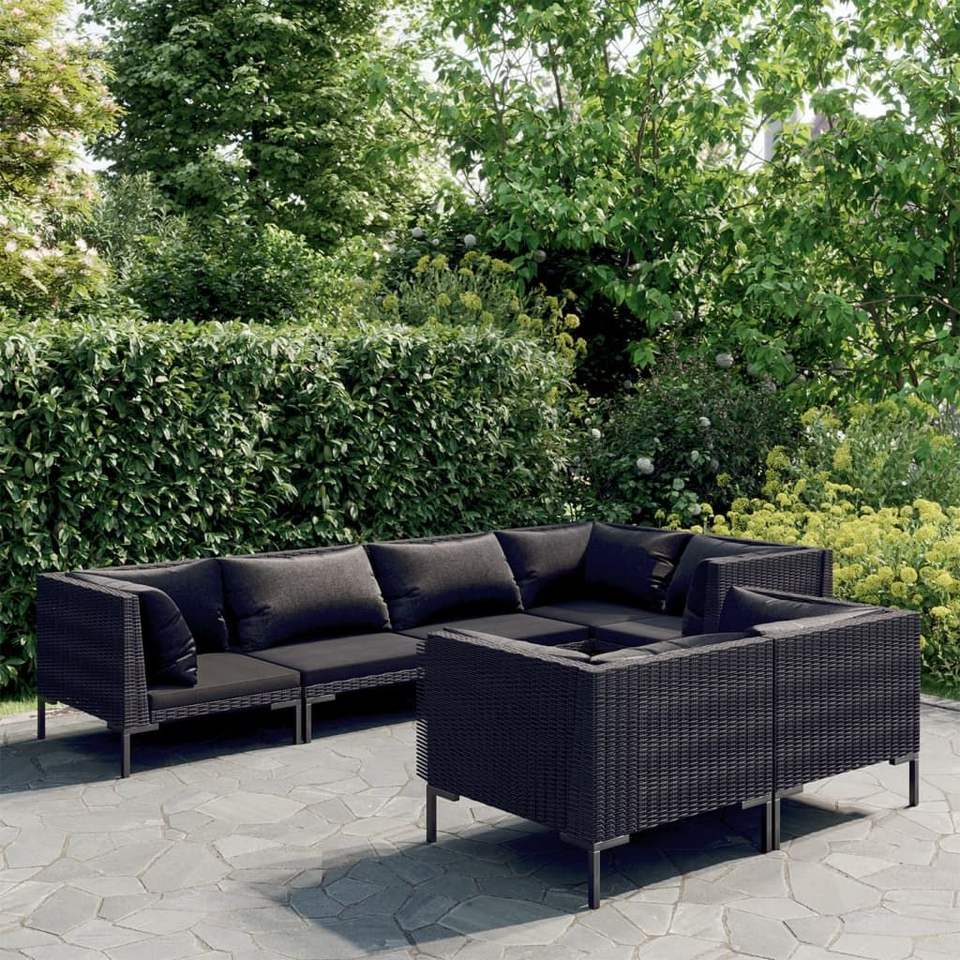 Dark Grey Rattan Garden Lounge Set 6 Seater Weather Resistant Outdoor Furniture Contemporary Design