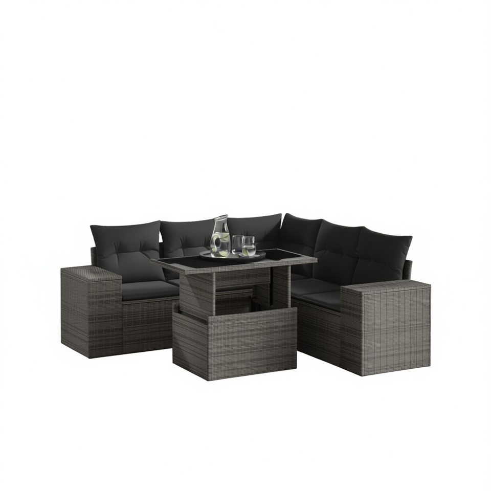Ensemble de canapés de jardin en rotin gris foncé 4 places, mobilier d'extérieur résistant aux intempéries, design contemporain