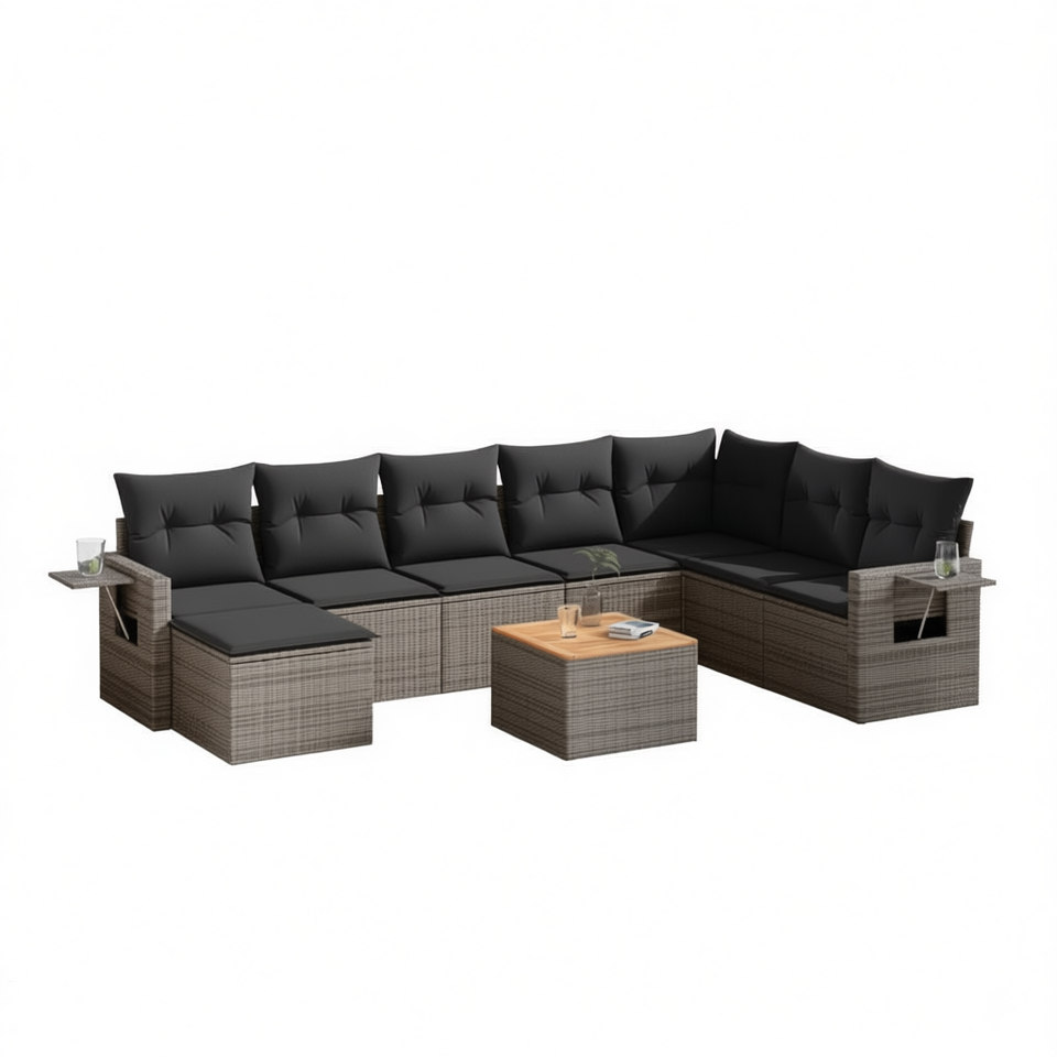 Ensemble de canapés de jardin en rotin gris foncé 6 places avec coussins, mobilier d'extérieur contemporain