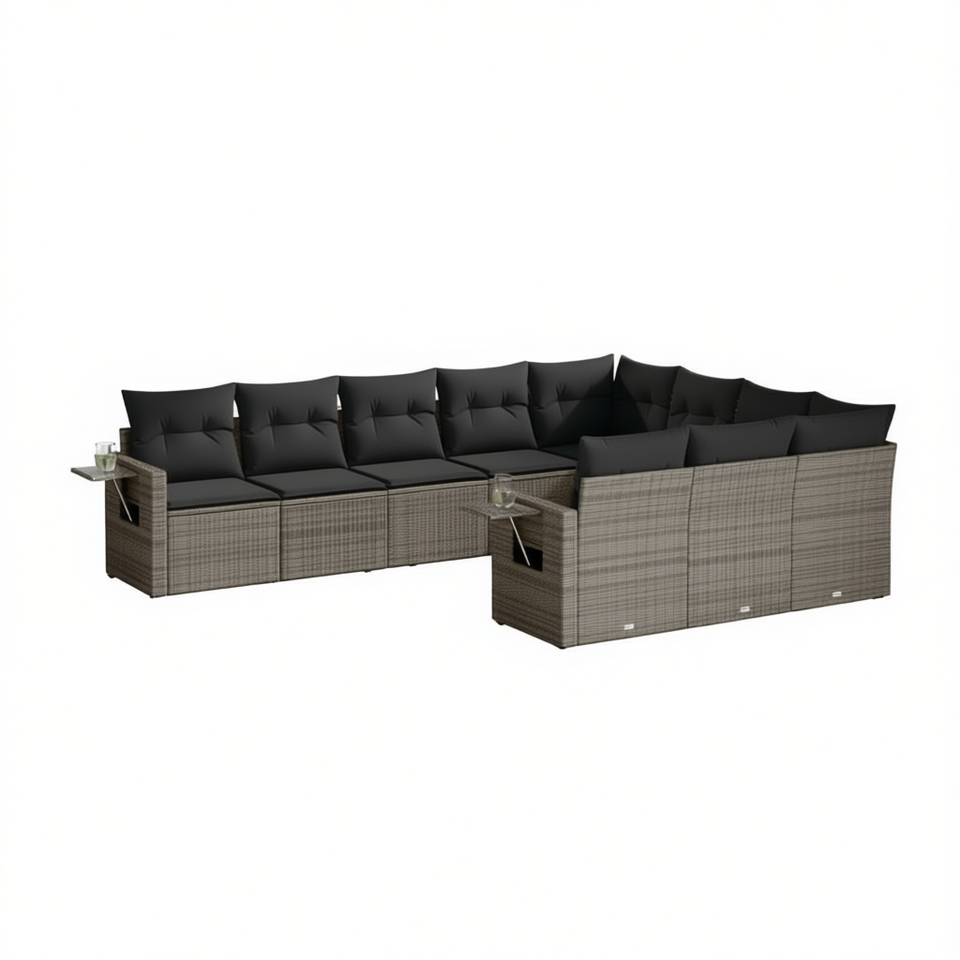 Ensemble de canapés de jardin en rotin gris foncé 8 places, mobilier d'extérieur au design contemporain, résistant aux intempéries