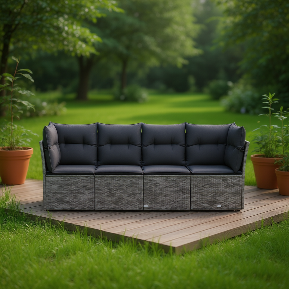 Canapé de jardin en rotin gris foncé trois places, mobilier d'extérieur, coussin en mousse haute densité imperméable, design contemporain
